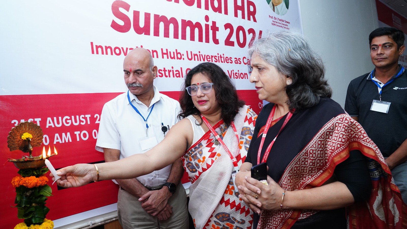श्री गुरु राम राय विश्वविद्यालय के पटेल नगर कैंपस में आयोजित एचआर समिट का शुभारंभ मुख्य अतिथि उत्तराखंड सरकार के कौशल विकास मिशन एवं सेवायोजन विभाग के सलाहकार जितेंद्र मुदलियार, विशिष्ट अतिथि उनो स्कूल ऑफ़ मैनेजमेंट के संस्थापक क्षितिज डोवाल, विशिष्ट अतिथि फ्रैन कनेक्ट के एचआर मनीष कुमार, श्री गुरु राम राय विश्वविद्यालय के कुलसचिव डाॅ अजय कुमार खण्डूड़ी, को-ओर्डिनेटर डाॅ आर.पी.सिंह व डाॅ मनीषा मैंदुली ने संयुक्त रूप से दीप प्रज्वलन के साथ किया।