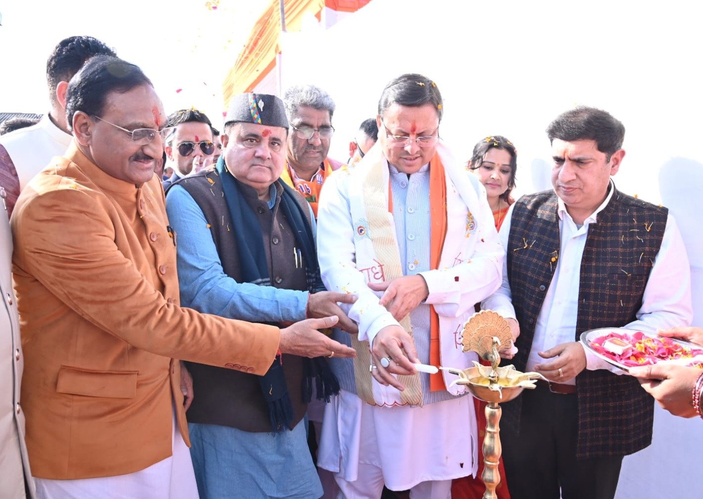 मंगलौर : मुख्यमंत्री पुष्कर सिंह धामी ने सोमवार को मण्डी मैदान मंगलौर में आयोजित लाभार्थी सम्मान समारोह के अवसर पर 46.78 करोड़ की विभिन्न योजनाओं का लोकार्पण एवं शिलान्यास किया। जिसमें 45.62 करोड़ लागत की 21 योजनाओं का शिलान्यास तथा 1.16 करोड़ की 8 योजनाओं का लोकार्पण शामिल है। इस अवसर पर मुख्यमंत्री ने पीएम आवास योजना के लाभार्थियों को आवंटित आवासों की चाबी, गैस कनेक्शन के साथ स्वयं सहायता समूहों को दी जाने वाली धनराशि के चेक, पीएम मातृ वंदन योजना के पात्रों को महालक्ष्मी किट, प्रदान किये।
