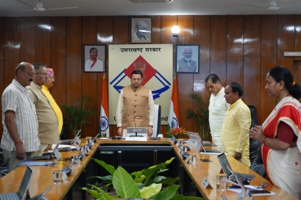 देहरादून : मुख्यमंत्री पुष्कर सिंह धामी की अध्यक्षता में गुरुवार को सचिवालय में मंत्रिमंडल की बैठक आयोजित हुई। बैठक से पूर्व मुख्यमंत्री सहित सभी कैबिनेट मंत्रियों ने दिवंगत विधायक शैला रानी रावत के आकस्मिक निधन पर 02 मिनट का मौन रखकर उन्हें श्रद्धांजलि अर्पित की।