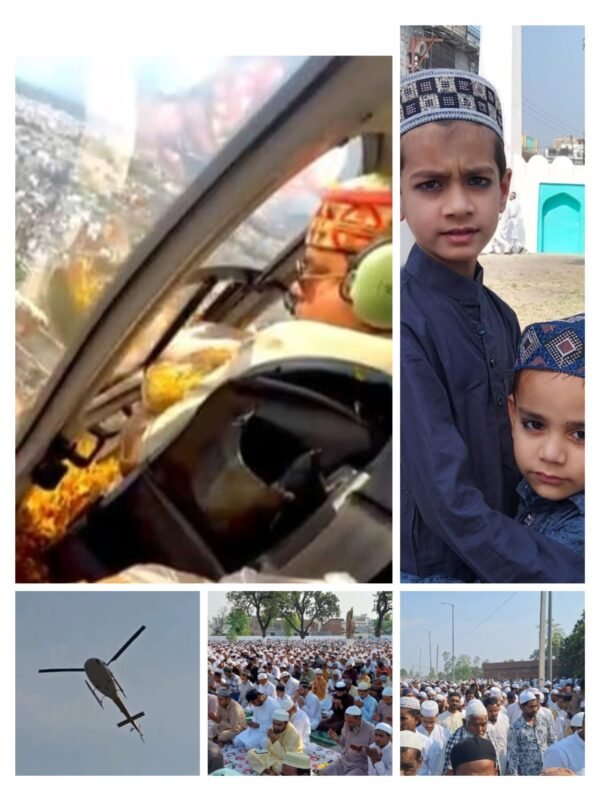 हरिद्वार लोकसभा क्षेत्र में ईदगाहों पर नमाजियों पर निर्दलीय प्रत्याशी उमेश कुमार ने हेलीकॉप्टर से पुष्पवर्षा कर आपसी सौहार्द का दिया संदेश