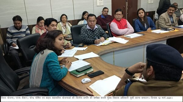 देहरादून : मुख्य विकास अधिकारी झरना कमठान की अध्यक्षता में विकासभवन सभागार में जिला योजना/राज्य सैक्टर/केन्द्र पोषित एवं बाह्य सहायतित योजनाओं की वित्तीय प्रगति की समीक्षा बैठक आयोजित की गई। मुख्य विकास अधिकारी ने निर्देशित किया किया कि जिन विभागों की योजनाओं में व्यय प्रगति कम है ऐसे सभी विभाग 15 मार्च तक व्यय प्रगति को शत्प्रतिशत् करना सुनिश्चित करें। जिला योजना में शतप्रतिशत् व्यय न करने वाले विभागों के अधिकारियों को दी जाएगी प्रतिकूल प्रविष्टि दर्ज की जाएगी। साथ राज्य सैक्टर एवं केन्द्रपोषित योजनाओं में डी श्रेणी वाले विभागों पर प्रतिकूल प्रविष्टि के लिए शासन को किया जाएगा पत्राचार।