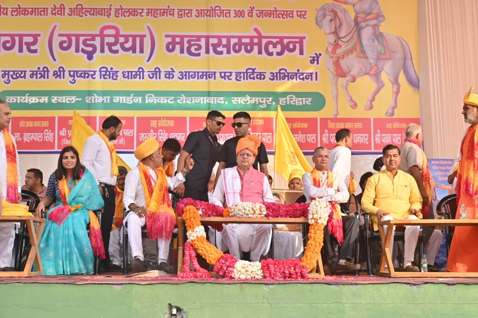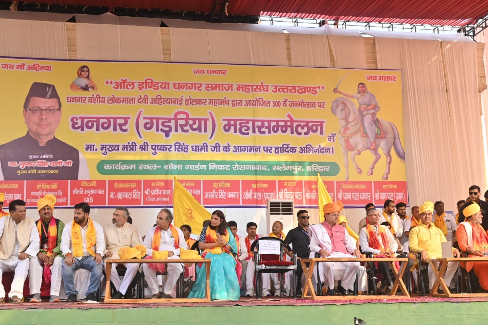 हरिद्वार : मुख्यमंत्री पुष्कर सिंह धामी ने हरिद्वार में धनगर समाज द्वारा आयोजित लोकमाता अहिल्याबाई होल्कर की त्रिशताब्दी जयंती कार्यक्रम में प्रतिभाग किया ।
