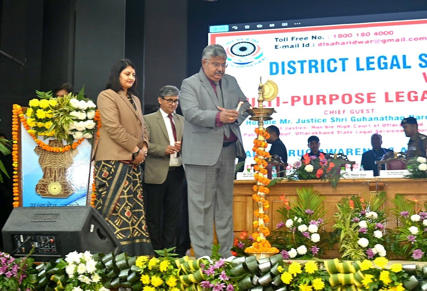 हरिद्वार : उत्तराखंड राज्य सेवा विधिक प्राधिकरण नैनीताल एवं जिला सेवा विधिक प्राधिकरण हरिद्वार के संयुक्त तत्वाधान में कोर कॉलेज हरिद्वार में नशा मुक्त अभियान के तहत बहुद्देश्य विधिक सेवा एवं जागरूकता शिविर का आयोजन किया गया, जिसमें मुख्य अतिथि मुख्य न्यायाधीश उच्च न्यायालय नैनीताल गुहनाथन नरेंद्र एवं विशेषत अतिथि न्यायमूर्ति राकेश थपलियाल ने दीप प्रज्वलित कर कार्यक्रम का शुभारंभ किया।