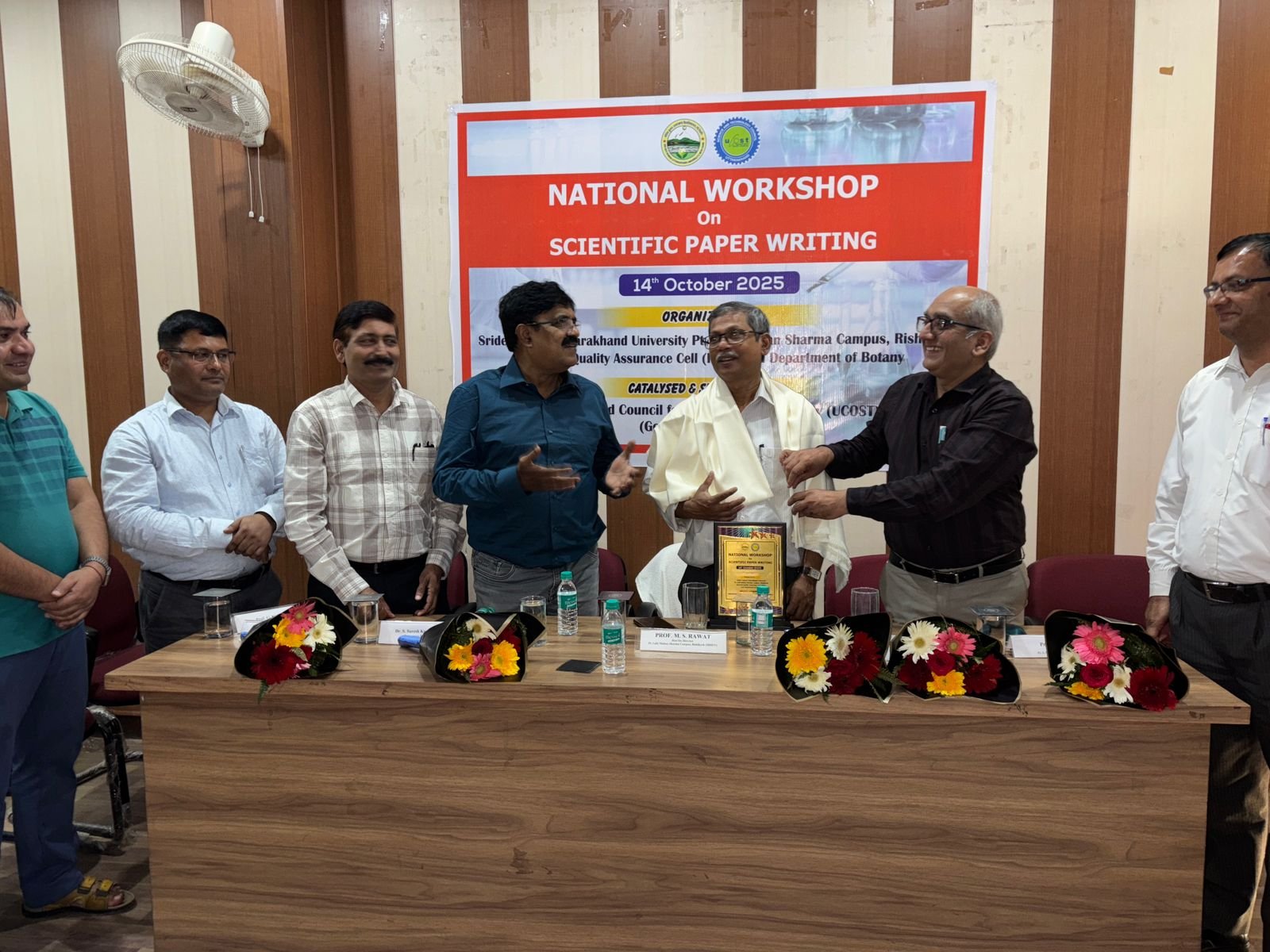 ऋषिकेश : उत्तराखंड राज्य विज्ञान एवं प्रौद्योगिकी परिषद (यूकास्ट) के तत्वावधान में आज 14 अगस्त 2025 को पंडित ललित मोहन शर्मा श्रीदेव सुमन उत्तराखंड विश्वविद्यालय परिसर ऋषिकेश में आंतरिक गुणवत्ता आश्वासन प्रकोष्ठ व वनस्पति विज्ञान के द्वारा “वैज्ञानिक शोध पत्र लेखन” विषय पर एकदिवसीय राष्ट्रीय कार्यशाला का आयोजन किया गया। इसका मुख्य उद्देश्य वैज्ञानिक पत्र लेखन विषय पर शोधकर्ताओं व छात्रों की रुचि को बढ़ावा देकर उनके वैज्ञानिक विचारों को प्रोत्साहित करना था।