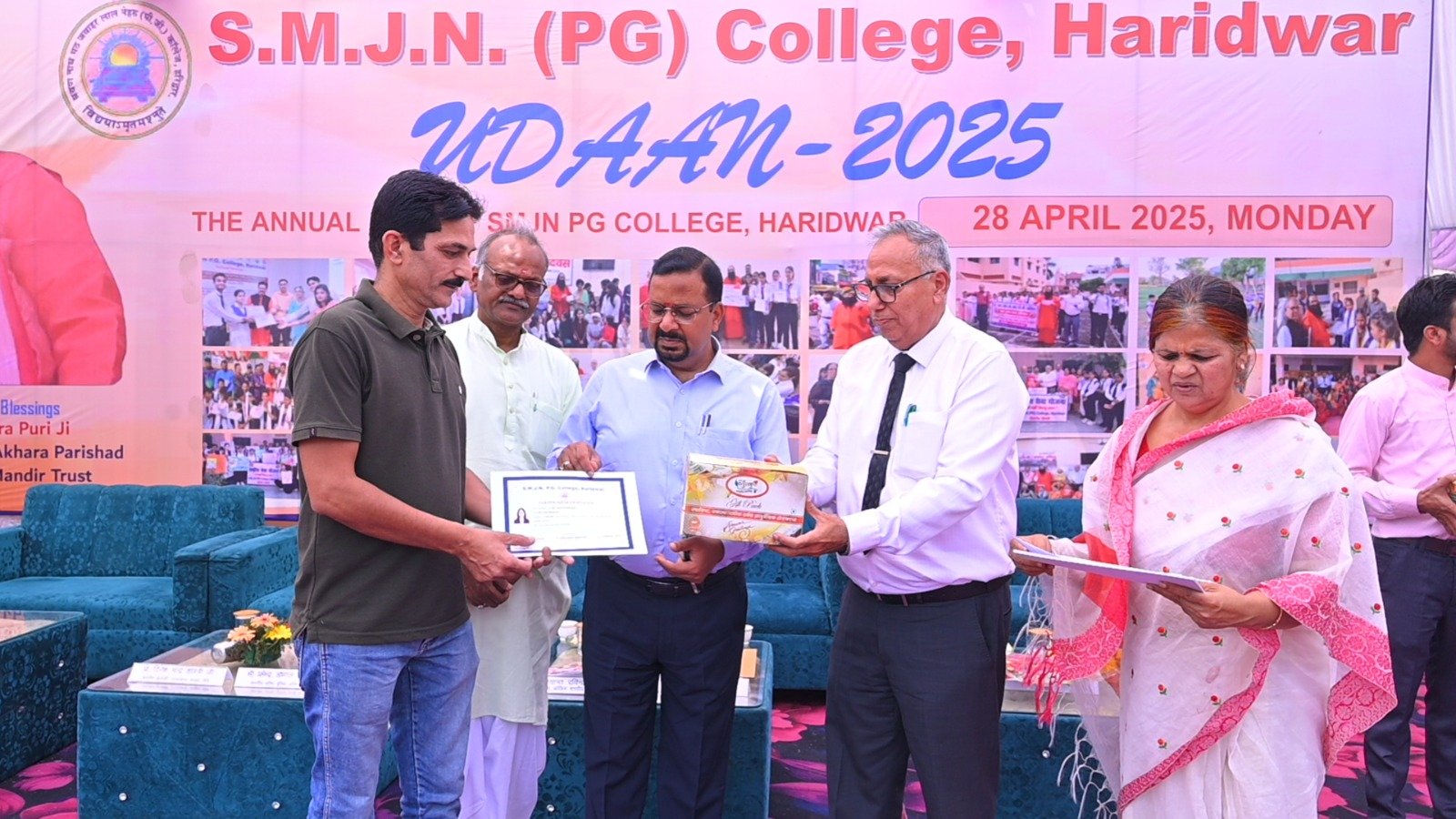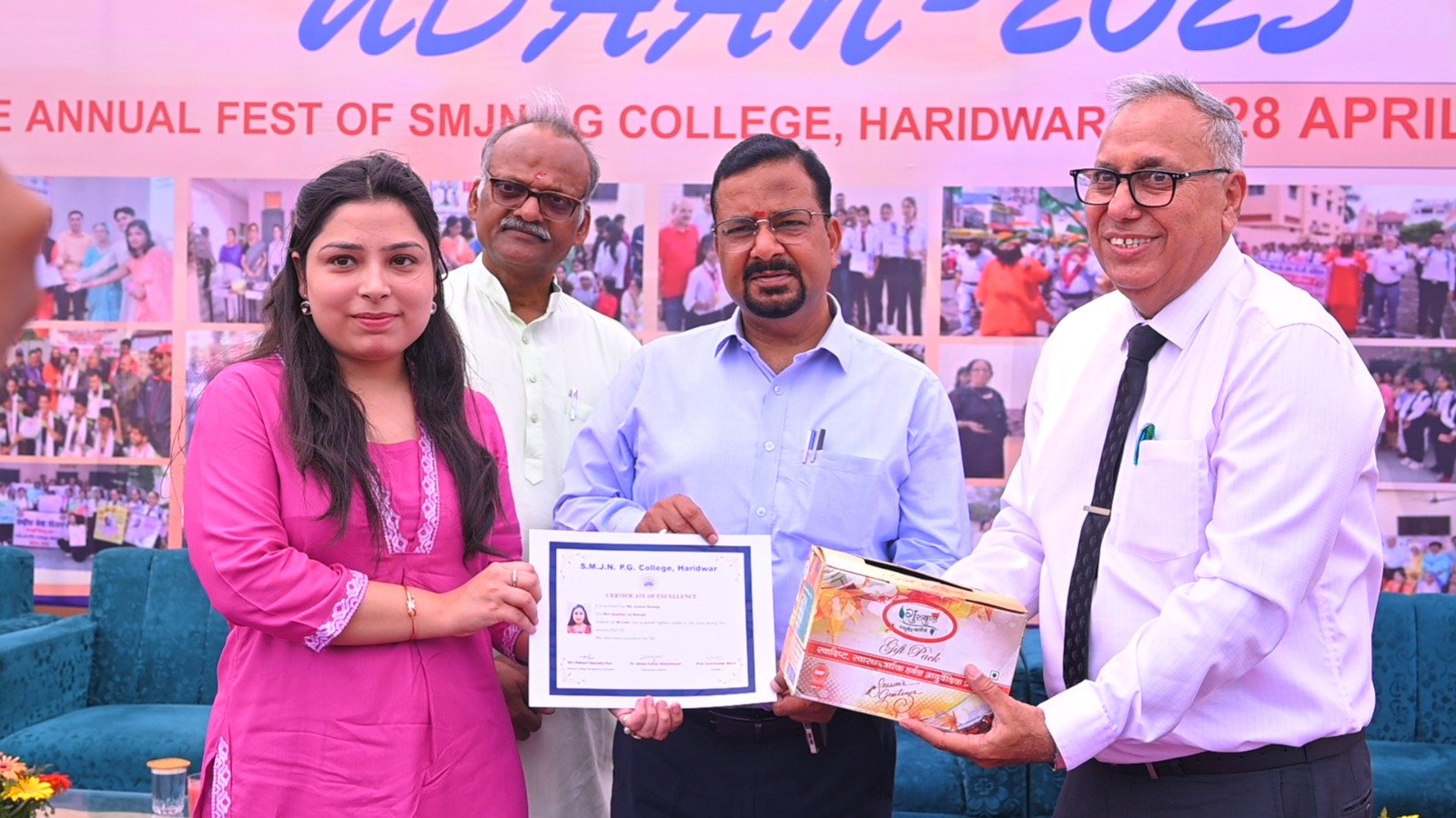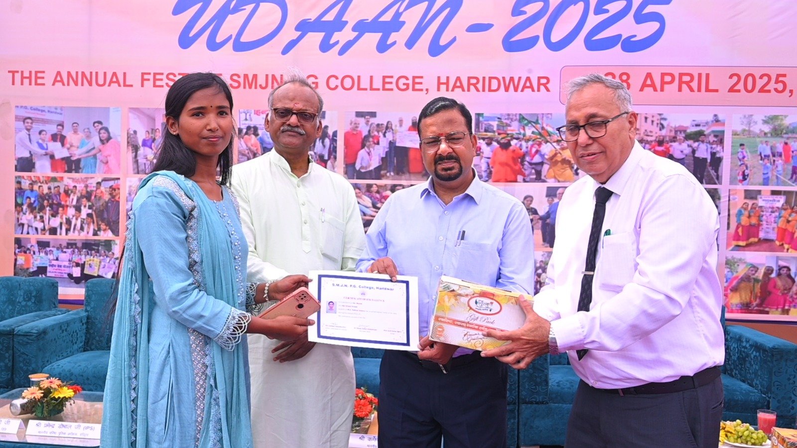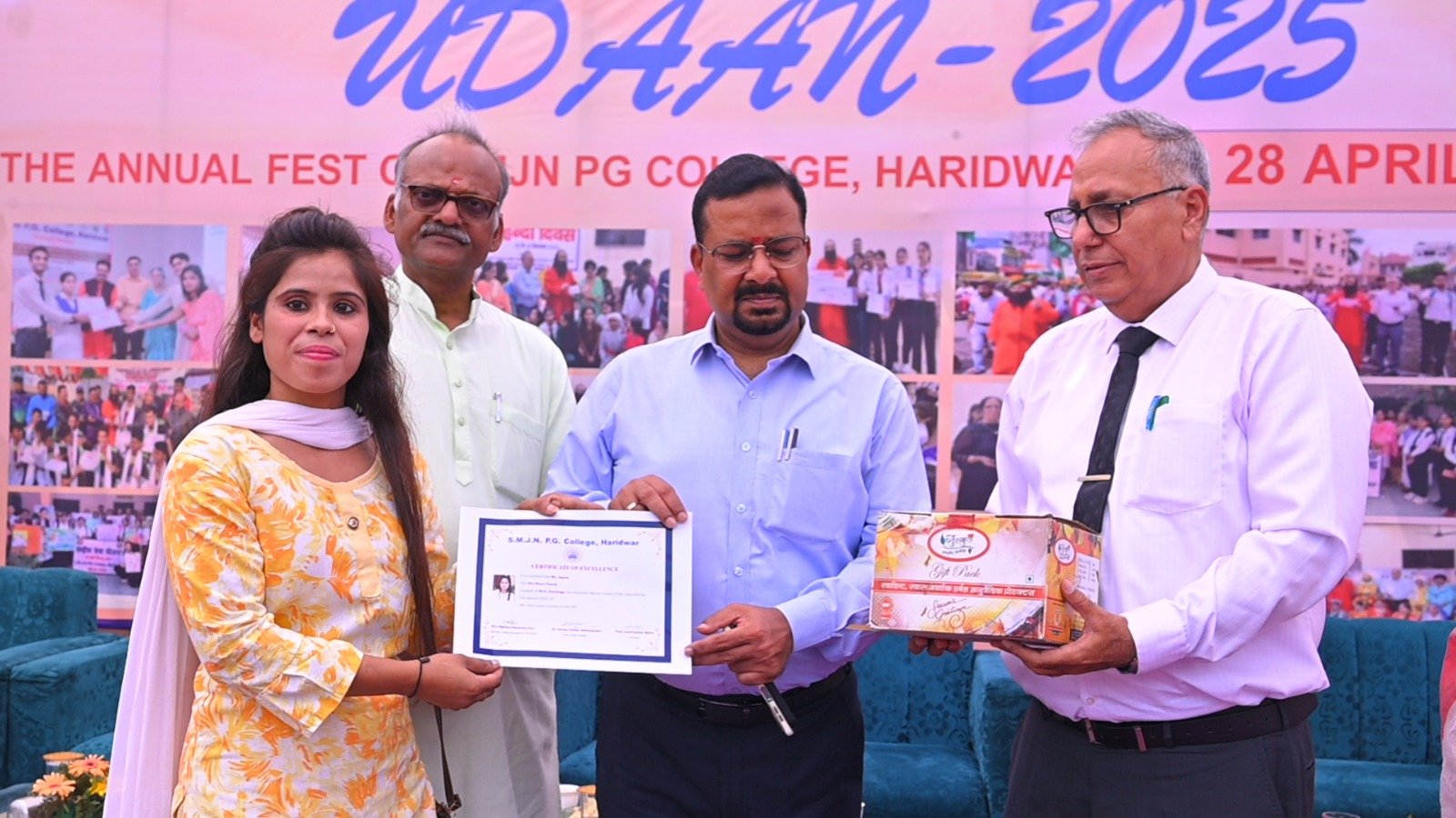 हरिद्वार : एस.एम.जे.एन. पी.जी. कॉलेज के वार्षिक महोत्सव ‘उड़ान’ का जिलाधिकारी कर्मेन्द्र सिंह दीप जलाकर शुभारम्भ किया। जिलाधिकारी ने विद्यार्थियों को सम्बोधित करते हुए कहा कि नई शिक्षा नीति छात्र-छात्राओं के स्किल को निखारने का काम करेगी। उन्होंने विद्यार्थियों को मार्गदर्शित करते हुए कहा कि निश्चित तौर पर आप सभी विद्यार्थी इस मोड़ पर हैं कि ग्रेजुएशन के बाद या पोस्ट ग्रेजुएशन के बाद कैरियर का विकल्प एक चौराहे के समान दिखाई देता है और सबसे जरूरी होता है यह तय करना कि आपको किस रास्ते में जाना है, केरियर रूपी मार्ग के चयन में अगर थोड़ी सी भी चूक होती है तो आगे का रास्ता बहुत मुश्किल हो सकता है। उन्होंने कहा कि अपने भविष्य के रास्त का चयन शान्त मन से, सोच समझकर व अपनी रूचि के अनुरूप चयन किया तो निश्चित तौर पर आपको आगे अच्छा सुनहरा रास्ता मिलेगा।