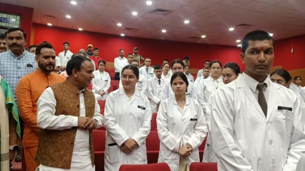 चिकित्सा स्वास्थ्य मंत्री डॉ. धन सिंह रावत के हाथों वाइट कोट पहनने पर उत्साहित दिखे एमबीबीएस के नये छात्र-छात्राएं