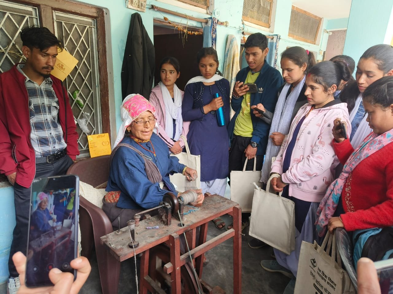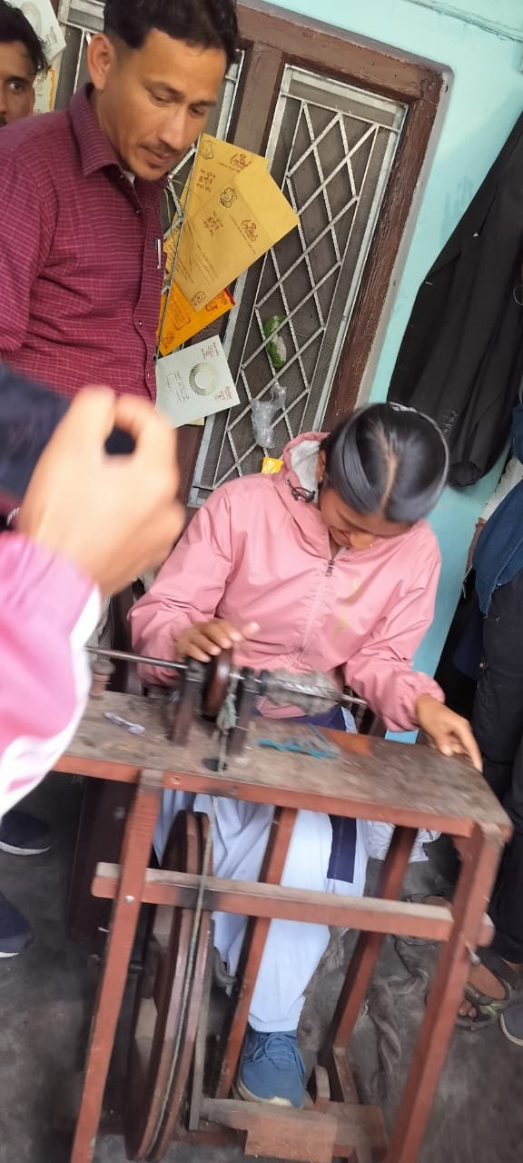नंदानगर : मशरूम की खेती,भांग और कंडाली के रेशे बनाने वाले उद्यमियों से मिले नंदानगर महाविद्यालय के छात्र । 17 मार्च 2024 को शहीद जगदीश प्रसाद पुरोहित राजकीय महाविद्यालय नंदानगर (घाट) में देवभूमि उद्यमिता योजना के अंतर्गत 12 दिवसीय उद्यमिता विकास कार्यक्रम सातवें दिन छात्रों ने मशरूम की खेती करने वाले स्थानीय उद्यमी प्रेम सिंह राणा के यूनिट का दौरा किया । साथ ही छात्रों ने भांग के रेशे बनाने वाले भरत पाल एवं माधवी देवी जो ऊन,कंडाली(बिच्छू  घास) व भांग के रेशे से परिधान निर्मित करती हैं उनसे मुलाकात की और जाना कि कैसे रेशे बनाए जाते हैं इसमें आधुनिक मशीन और हस्तकरघा दोनों पद्धतियों की जानकारी प्राप्त की ।