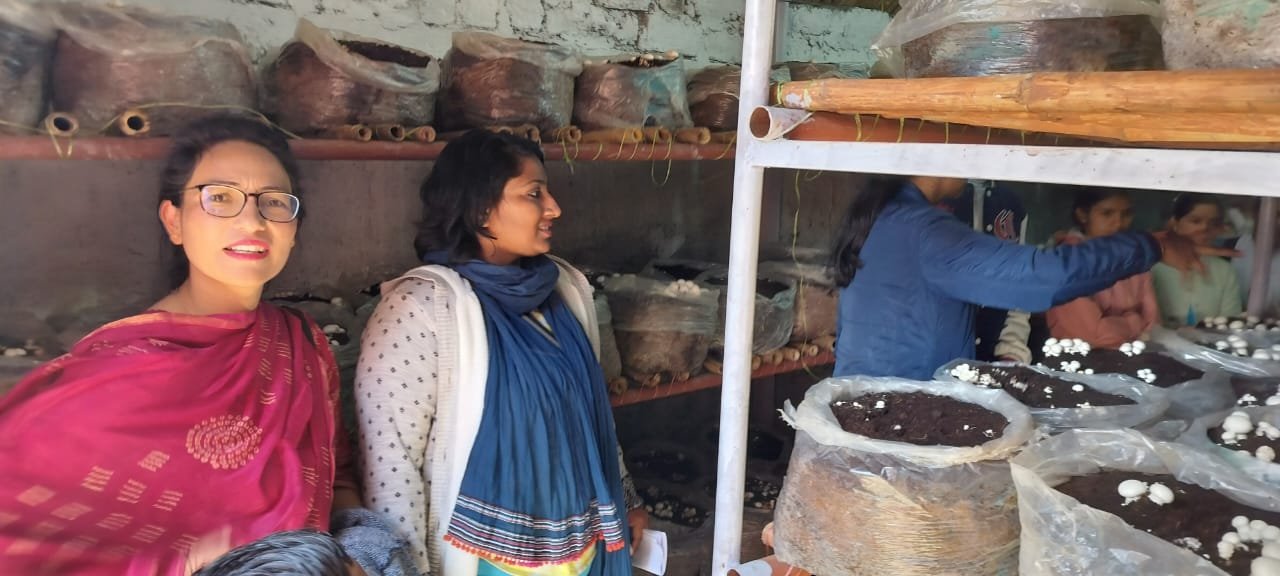 शहीद जगदीश प्रसाद पुरोहित राजकीय महाविद्यालय नंदानगर में आयोजित EDP कार्यशाला के 07वें दिन मशरूम की खेती, भांग और कंडाली के रेशे बनाने वाले उद्यमियों से मिले छात्र