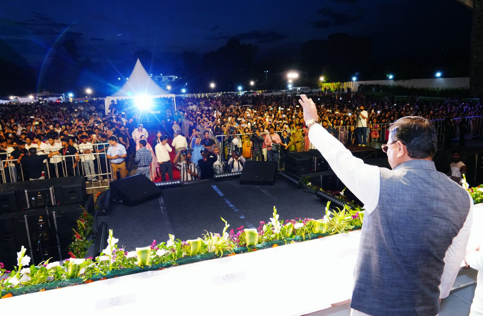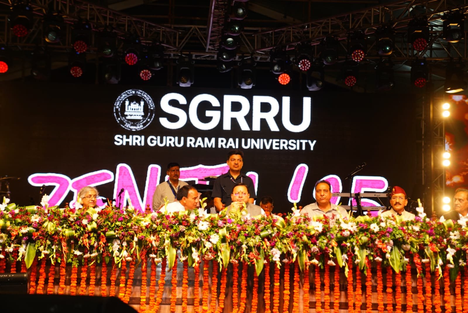 देहरादून । श्री गुरु राम राय विश्वविद्यालय के वार्षिक सांस्कृतिक महोत्सव जेनिथ फेस्ट 2025 के दूसरा दिन देशभक्ति के गीतों की बहार बही। मुख्यमंत्री पुष्कर सिंह धामी ने देश प्रेम की गीतों को देखा और छात्र-छात्राओं की हौंसलाफजाई की। पूरे कार्यक्रम के दौरान कार्यक्रम स्थल भारत माता की जय, हिन्दुस्तान जिंदाबाद वीर सपूतों की जय से गुंजायमान रहा। कार्यक्रम का दूसरा आकर्षण उत्तराखण्ड का लोकप्रिय बैण्ड पाॅडवाज़ की प्रस्तुतियां रहीं। विश्वविद्यालय के हेलीपैड ग्राउंड पर उमड़े हजारों छात्रों ने इस दिन को एक अविस्मरणीय अनुभव बना दिया। उत्तराखंड के प्रसिद्ध पांडवाज बैंड की मनमोहक लाइव परफॉर्मेंस ने कार्यक्रम में चार चांद लगा दिए। अनुभव ऐसा कि ढोल धमाऊं की थाप पंडों गीतों पर देवी देवता कार्यक्रम स्थल पर अवतरति हो गए हों।