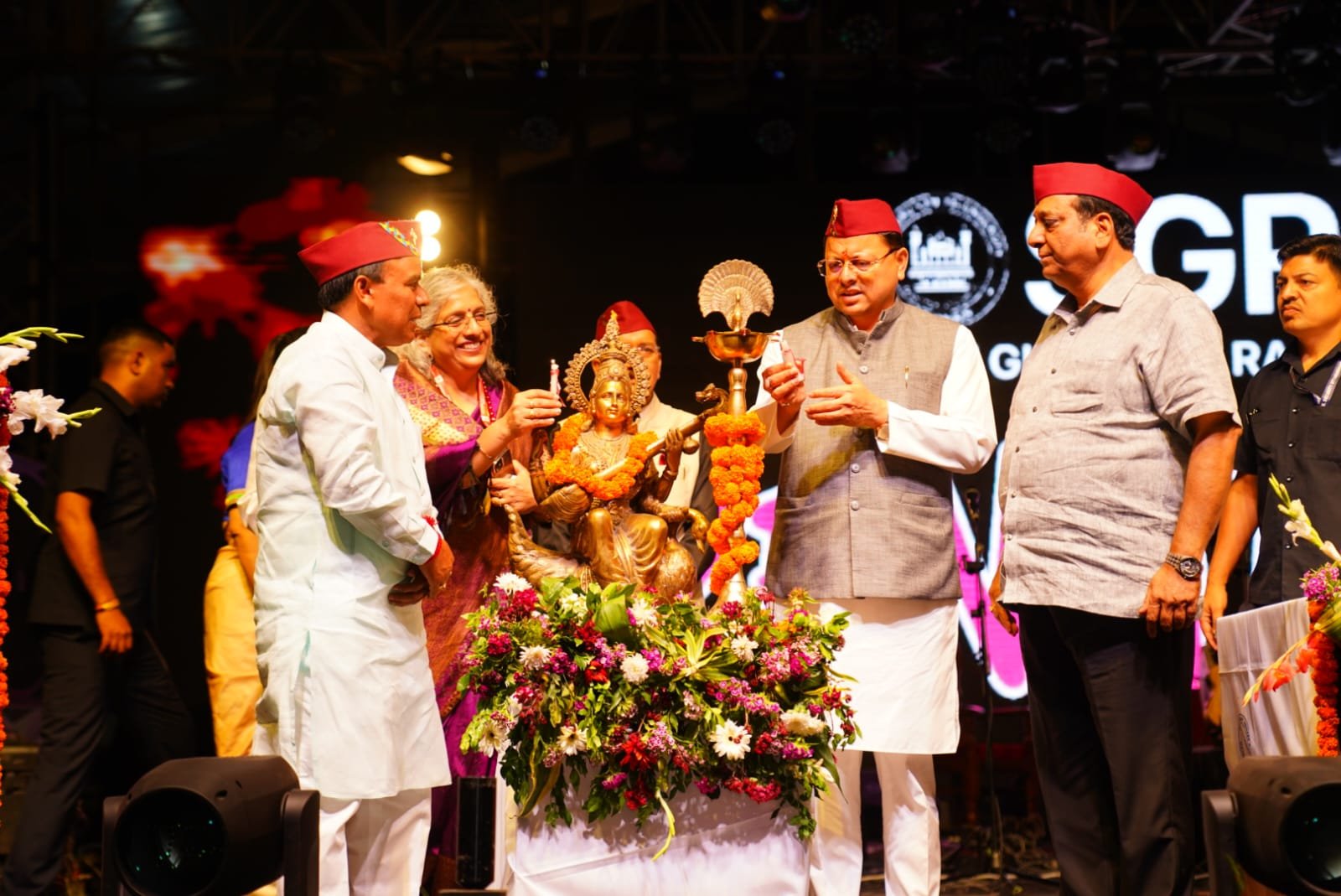 शनिवार को कार्यक्रम के दूसरे दिन का शुभारंभ मुख्य अतिथि पुष्कर सिंह धामी, मुख्यमंत्री, उत्तराखण्ड विशिष्ट अतिथि डाॅ धन सिंह रावत, स्वास्थ्य एवम् शिक्षा मंत्री उत्तराखण्ड, विनोद चमोली, विधायक धर्मपुर, विपिन चन्द्र घिल्डियाल, चीफ एडवाइजर, श्री गुरु राम राय एजुकेशन मिशन, डाॅ कुमुद सकलानी, कुलपति श्री गुरु राम राय विश्वविद्यालय, डाॅ जे.पी.पचैरी, सलाहकार, माननीय प्रेसीडेंट, श्री गुरु राम राय विश्वविद्यालय ने दीप प्रज्जवलित कर कार्यक्रम का शुभारंभ किया।