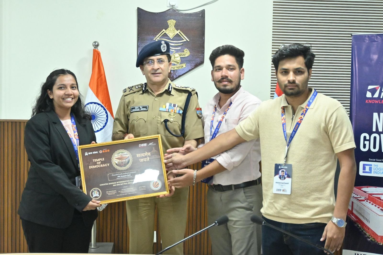 देहरादून : देश के प्रतिष्ठित शिक्षण संस्थानों — IITs, IIMs, NLUs व केंद्रीय विश्वविद्यालयों — से आए 50 छात्र-छात्राओं के प्रतिनिधिमंडल ने आज छात्र संसद इंडिया के राष्ट्रीय गवर्नेंस टूर के अंतर्गत पुलिस महानिदेशक उत्तराखंड दीपम सेठ से सरदार पटेल भवन में भेंट की। इस अवसर पर एक ओपन हाउस संवाद सत्र का आयोजन किया गया, जिसमें “कानून प्रवर्तन और सामुदायिक पुलिसिंग के माध्यम से जन सुरक्षा को सुदृढ़ करने” पर विस्तृत चर्चा हुई। उक्त सत्र का उद्देश्य देश के भावी नेतृत्वकर्ताओं को पुलिस एवं प्रशासनिक तंत्र की कार्यप्रणाली, समकालीन सुरक्षा चुनौतियों एवं तकनीकी नवाचारों से प्रत्यक्ष परिचित कराना था।