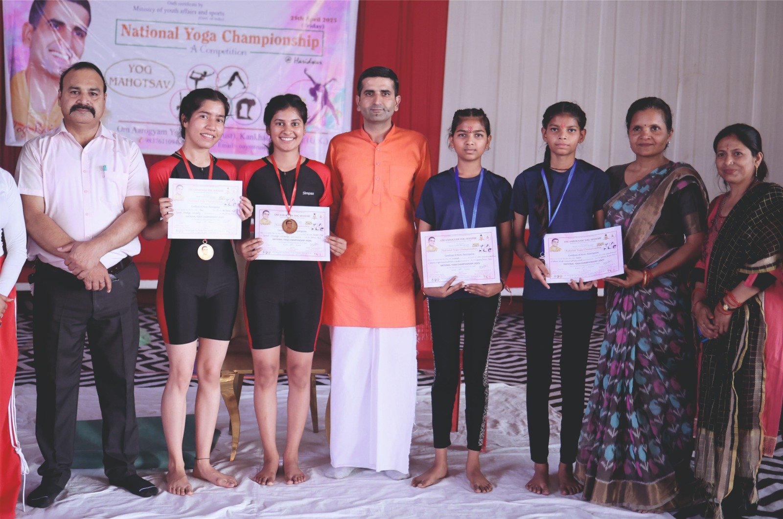 आर्टिस्टिक योग प्रतियोगिता में समूह वर्ग में धूमसिंह मैमोरियल पब्लिक स्कूल कनखल ने प्रथम स्थान एवं मां सरस्वती पब्लिक सी0 सै0 स्कूल बहादराबाद ने द्वितीय स्थान प्राप्त किया तथा पेयर वर्ग में रेनू एवं सोनाली ने प्रथम स्थान तथा श्रीजल कटारिया एवं पलक ने द्वितीय स्थान प्राप्त किया। साथ ही एकल वर्ग में भक्ती अरोड़ा ने प्रथम, श्रेया अरोड़ा ने द्वितीय एवं कार्तिक सिंह ने तृतीय स्थान प्राप्त किया। सूर्य नमस्कार प्रतियोगिता में 20 से कम आयु वर्ग में हरिओम नारायण, श्रेया अरोड़ा, गौरव कुमार ने क्रमशः स्वर्ण, रजत, कास्य पदक प्राप्त किए तथा 20 से अधिक आयु वर्ग में बीजल माटो, सुनीता मिंज, ऐकता भारद्वाज ने क्रमशः स्वर्ण, रजत, कास्य पदक प्राप्त किए। कार्यक्रम मे योगाचार्य अर्चना, डॉ राजेंद्र पाराशर, अमित खन्ना, दीप्ति सिंह, हिमानी, ओश्विन शर्मा, आकृति शर्मा, सिद्धम, आदि उपस्थित रहे।