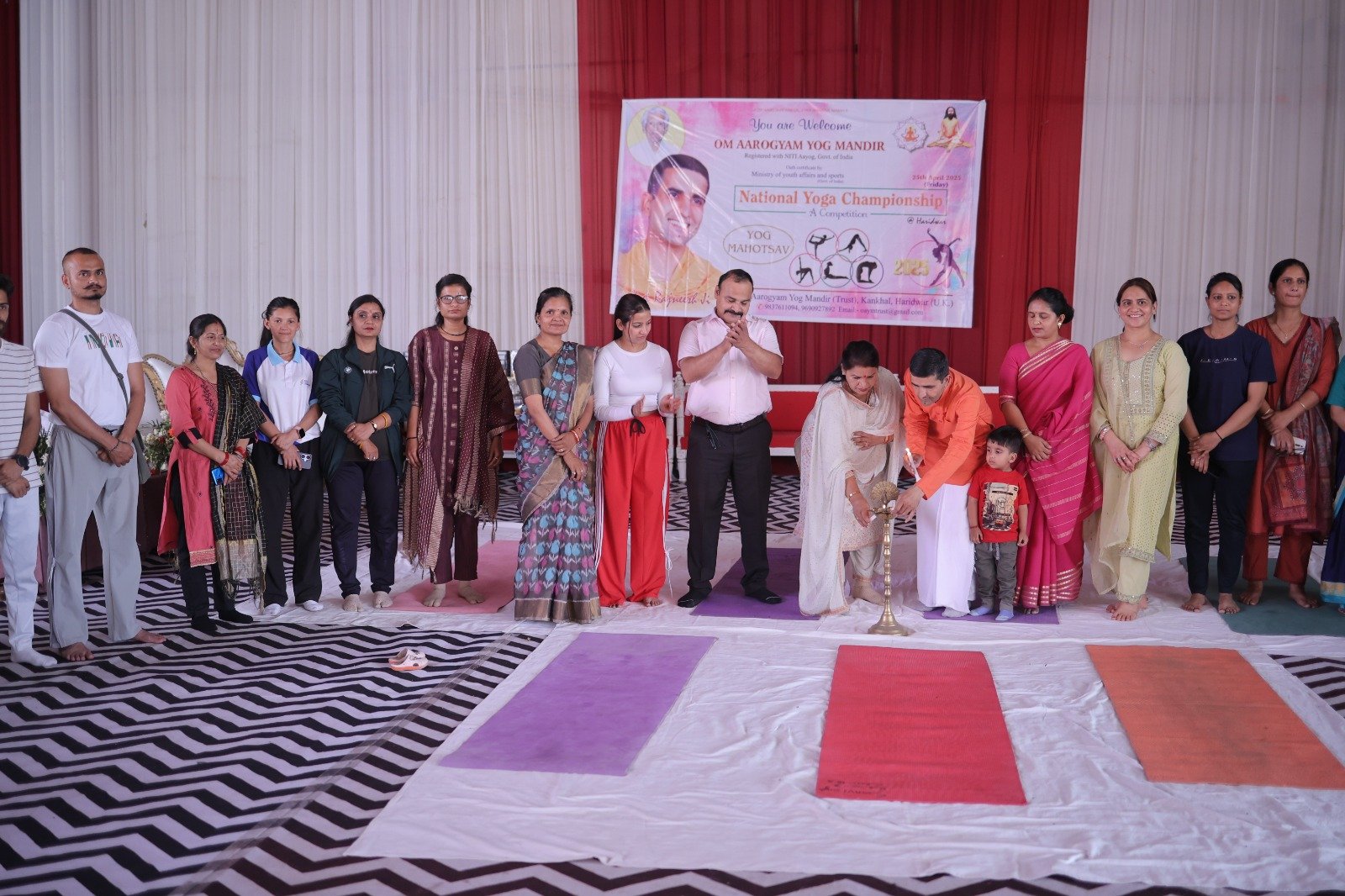 हरिद्वार : ऊँ आरोग्यम् योग मंदिर के तत्वाधान में इस वर्ष पुनः राष्ट्रीय योग प्रतियोगिता का आयोजन गौतम फॉर्म कनखल में किया गया। कार्यक्रम का शुभारंभ श्रीमति किरण जैसल मेयर नगर निगम हरिद्वार, ओयम अध्यक्ष योगी रजनीश, डॉ देव प्रकाश शर्मा, अर्चना शर्मा, दीप्ति सिंह, निधि पंत, पूनम, सोनिका, रेखा, वीरेन सिंह आदि ने दीप प्रज्वलित कर किया। योग प्रतियोगिता में विभिन्न विद्यालयों डी.पी.एस. रानीपुर, डी.पी.एस. दौलतपुर, मां सरस्वती पब्लिक स्कूल, उद्धेश्वर पब्लिक स्कूल, धूमसिंह मैमोरियल पब्लिक स्कूल, मां आनंदमयी स्कूल रायवाला, स्पर्श हिमालया यनिवर्सिटी देहरादून, योगधाम फिटनेस, एलिवेट योग स्टूडियो, सेरेनिटी योग, डांस वाइब्स आदि अनेक संस्थाओ के प्रतिभागियो ने योग प्रतियोगिता में प्रतिभाग किया। इसके साथ ही अनेक प्रतिभागियों ने मेरठ, सहारनपुर, ऋषिकेश, रुड़की, लक्सर आदि अन्य स्थानो से भी योग प्रतियोगिता में प्रतिभाग किया।