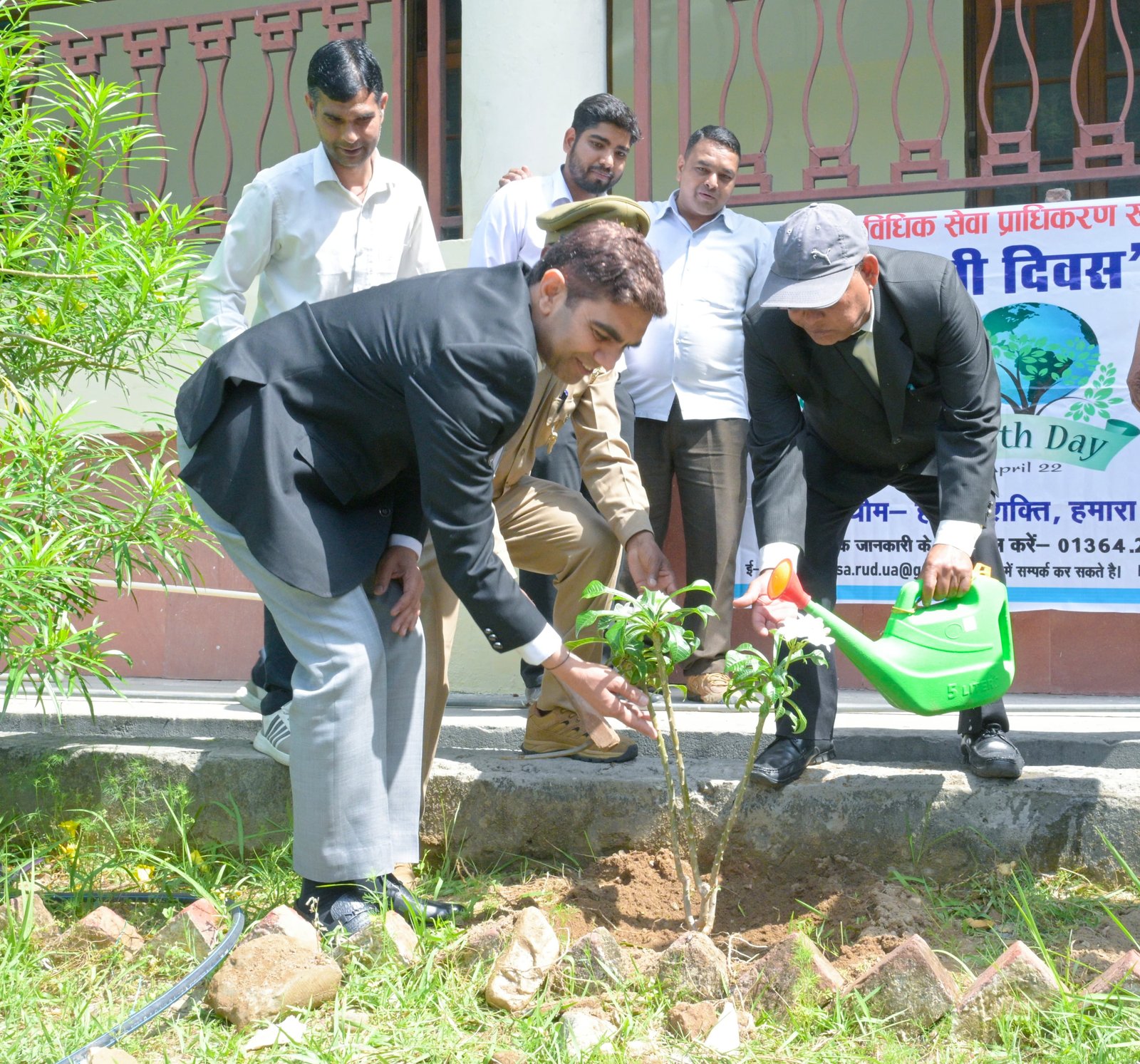 रुद्रप्रयाग : विश्व पृथ्वी दिवस के अवसर पर जिला विधिक सेवा प्राधिकरण रुद्रप्रयाग के तत्वावधान में जिला न्यायालय परिसर रुद्रप्रयाग में वृक्षारोपण कार्यक्रम का आयोजन किया गया। यह कार्यक्रम जनपद न्यायाधीश/अध्यक्ष, जिला विधिक सेवा प्राधिकरण रुद्रप्रयाग सहदेव सिंह के मार्गदर्शन एवं दिशा-निर्देशन में संपन्न हुआ। कार्यक्रम का आयोजन वन विभाग एवं उद्यान विभाग रुद्रप्रयाग के सहयोग से किया गया, जिसमें औषधीय पौधों के साथ अन्य छायादार और फलदार वृक्षों का रोपण किया गया।