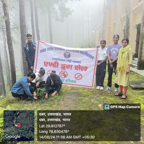 लैंसडाउन : भक्त दर्शन राजकीय  स्नातकोत्तर महाविद्यालय जयहरीखाल के एंटीड्रग सेल  के तत्वधान मे विकसित भारत का मंत्र भारत हो नशे से मुक्त कार्यक्रम श्रृंखला के तीसरे दिन  महाविद्यालय में पोस्टर प्रतियोगिता व स्लोगन एवं पौधारोपण कर लिया गया नशा मुक्ति देव भूमि का संकल्प l