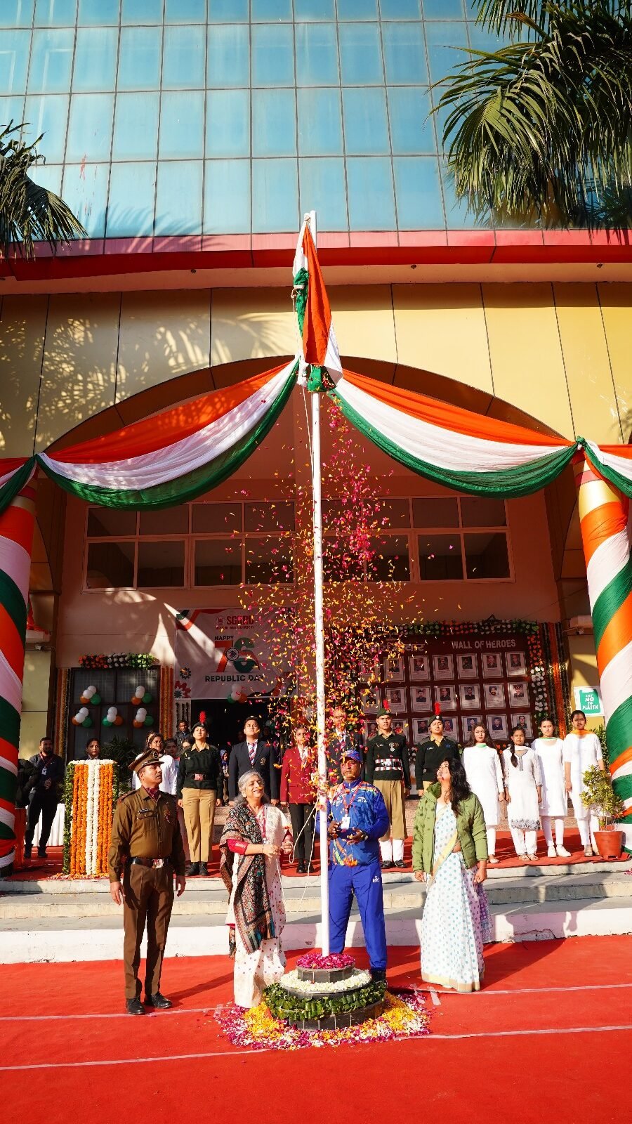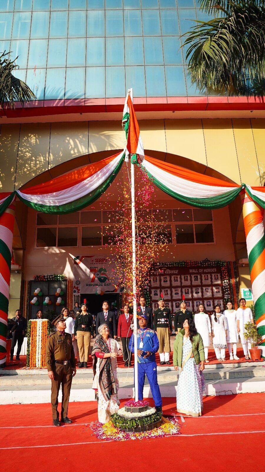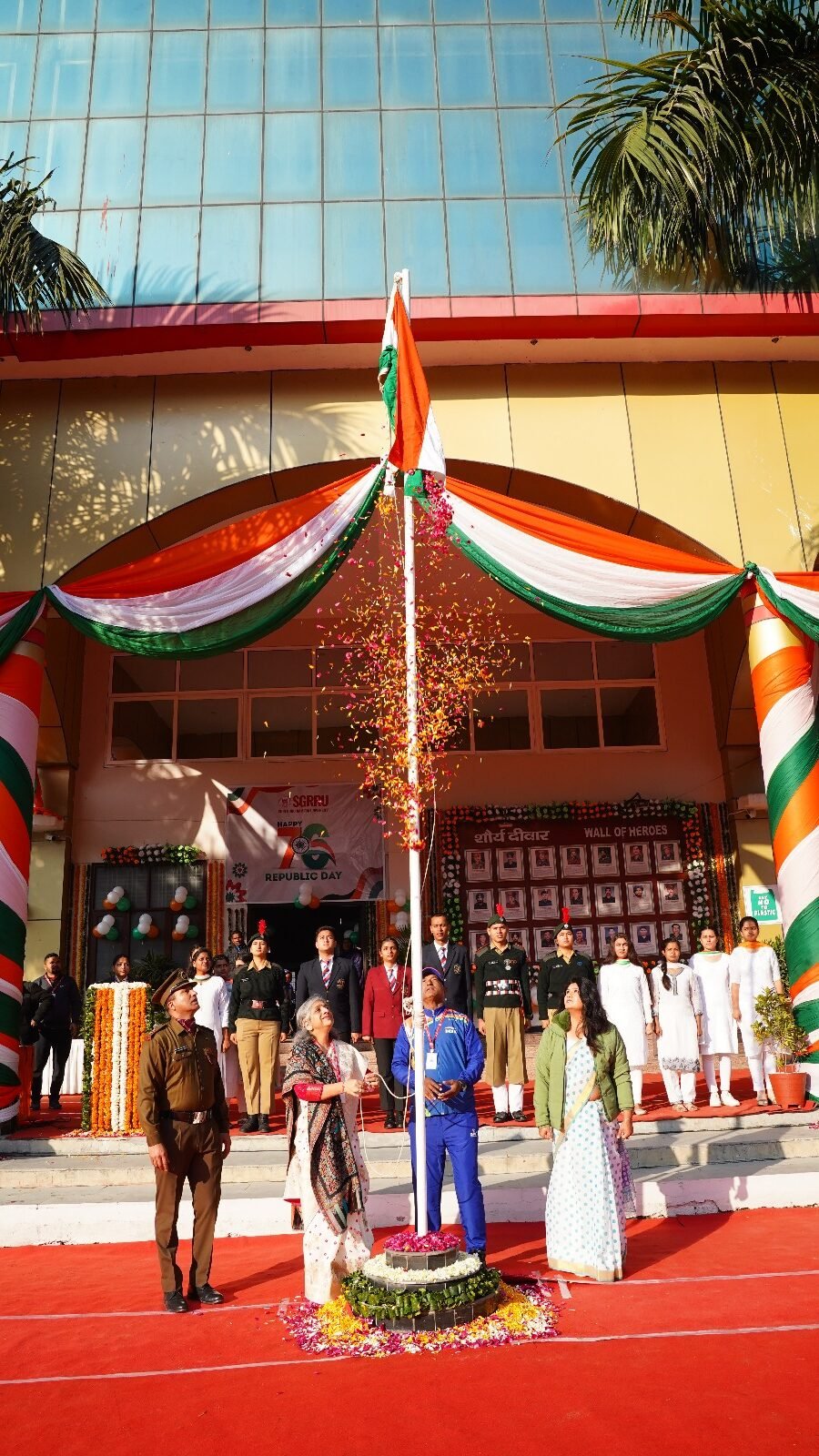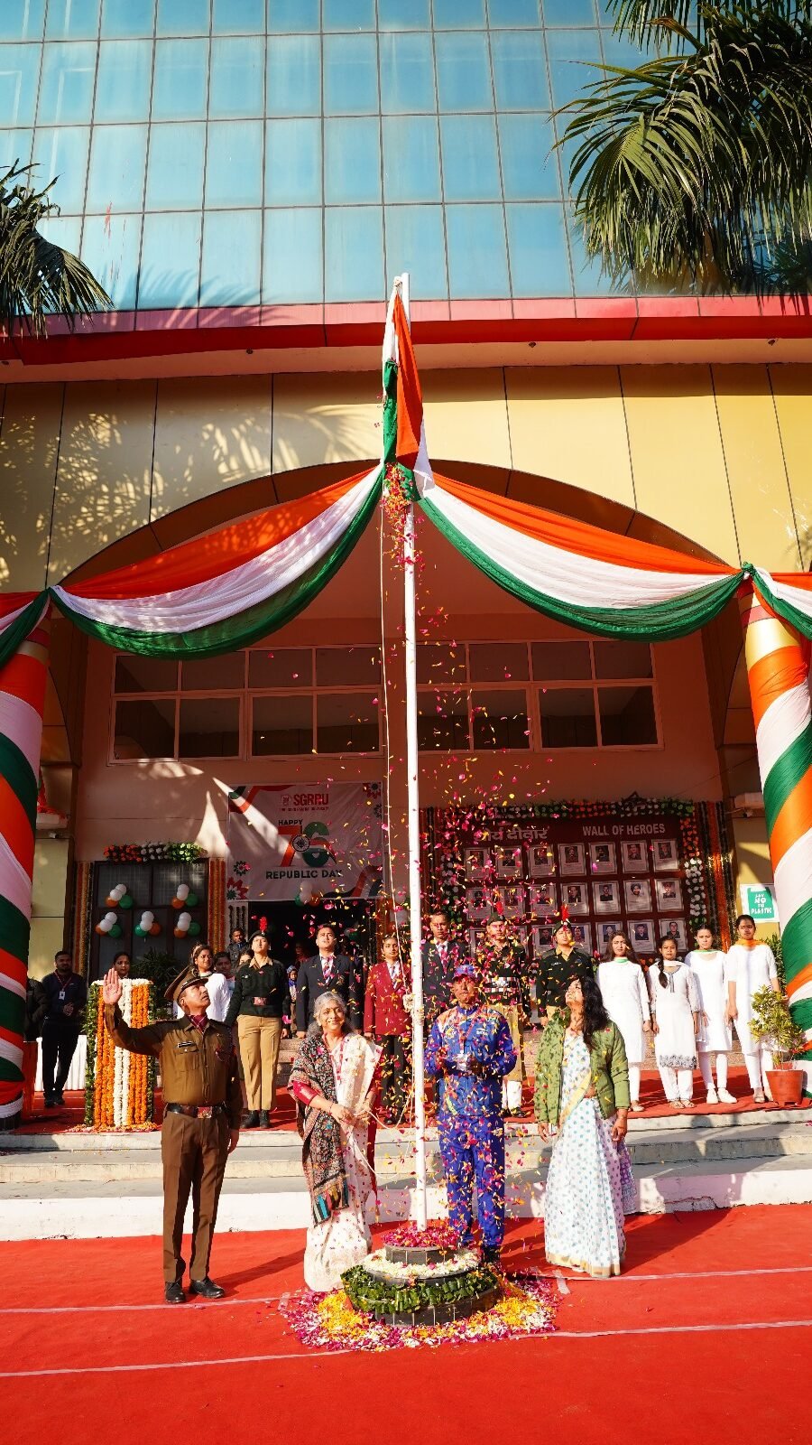 देहरादून। श्री गुरु राम राय विश्वविद्यालय (एसजीआरआरयू) सहित एसजीआरआर गुप के संस्थानों में गणतन्त्र दिवस समारोह धूमधाम के साथ मनाया गया। श्री दरबार साहिब श्री गुरु राम राय विश्वविद्यालय सहित एसजीआरआर के विभिन्न संस्थानों में गणतन्त्र दिवस पर मनमोहक कार्यक्रम आयोजित किए गए। श्री गुरु राम राय विश्वविद्यालय के एनएसएस, एनसीसी कैडेट्स, एनसीसी छात्र.छात्राओं सहित विश्वविद्यालय के 11 संघटक स्कूलों के छात्र.छात्राओं ने अनुशासित परेड से सबका मन मोह लिया।
