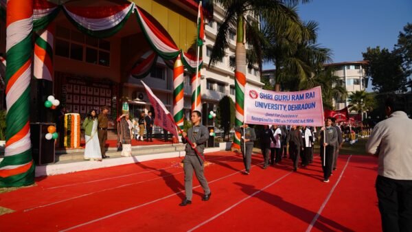 देहरादून। श्री गुरु राम राय विश्वविद्यालय (एसजीआरआरयू) सहित एसजीआरआर गुप के संस्थानों में गणतन्त्र दिवस समारोह धूमधाम के साथ मनाया गया। श्री दरबार साहिब श्री गुरु राम राय विश्वविद्यालय सहित एसजीआरआर के विभिन्न संस्थानों में गणतन्त्र दिवस पर मनमोहक कार्यक्रम आयोजित किए गए। श्री गुरु राम राय विश्वविद्यालय के एनएसएस, एनसीसी कैडेट्स, एनसीसी छात्र.छात्राओं सहित विश्वविद्यालय के 11 संघटक स्कूलों के छात्र.छात्राओं ने अनुशासित परेड से सबका मन मोह लिया।