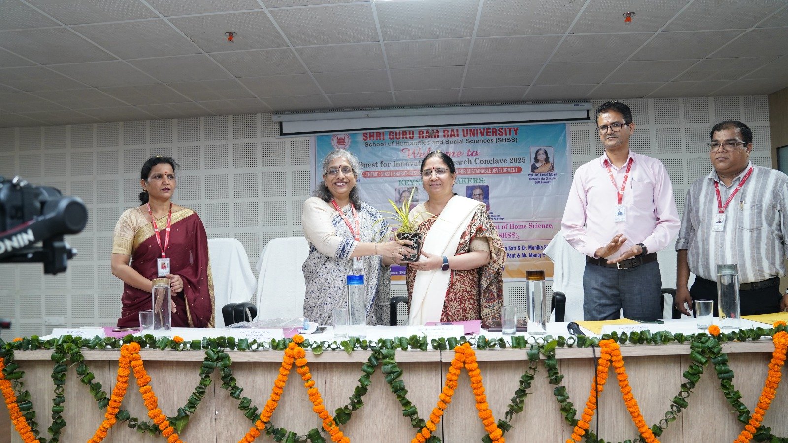 इस अवसर पर श्री गुरु राम राय विश्वविद्यालय के प्रेसिडेंट श्रीमहंत देवेंद्र दास जी महाराज ने स्कूल आफ ह्यूमैनिटीज एंड सोशल साइंस द्वारा आयोजित रिसर्च कान्क्लेव के आयोजकों को शुभकामनाएं प्रेषित की। कॉन्क्लेव का उद्घाटन विश्वविद्यालय की कुलपति प्रोफेसर डॉ कुमुद सकलानी, प्रथम सत्र की अध्यक्ष और मुख्य अतिथि दून विश्वविद्यालय की कुलपति प्रोफेसर डॉ सुरेखा डंगवाल, इन्नोवेशन एंड इनक्यूबेशन सेंटर के निदेशक प्रो. (डॉ.) डी.पी. मैठाणी , डीन प्रो डॉ प्रीति तिवारी और कॉन्क्लेव के संयोजक इतिहास विभाग के विभागाध्यक्ष डॉ सुनील किश्टवाल ने दीप प्रज्वलन करके किया।