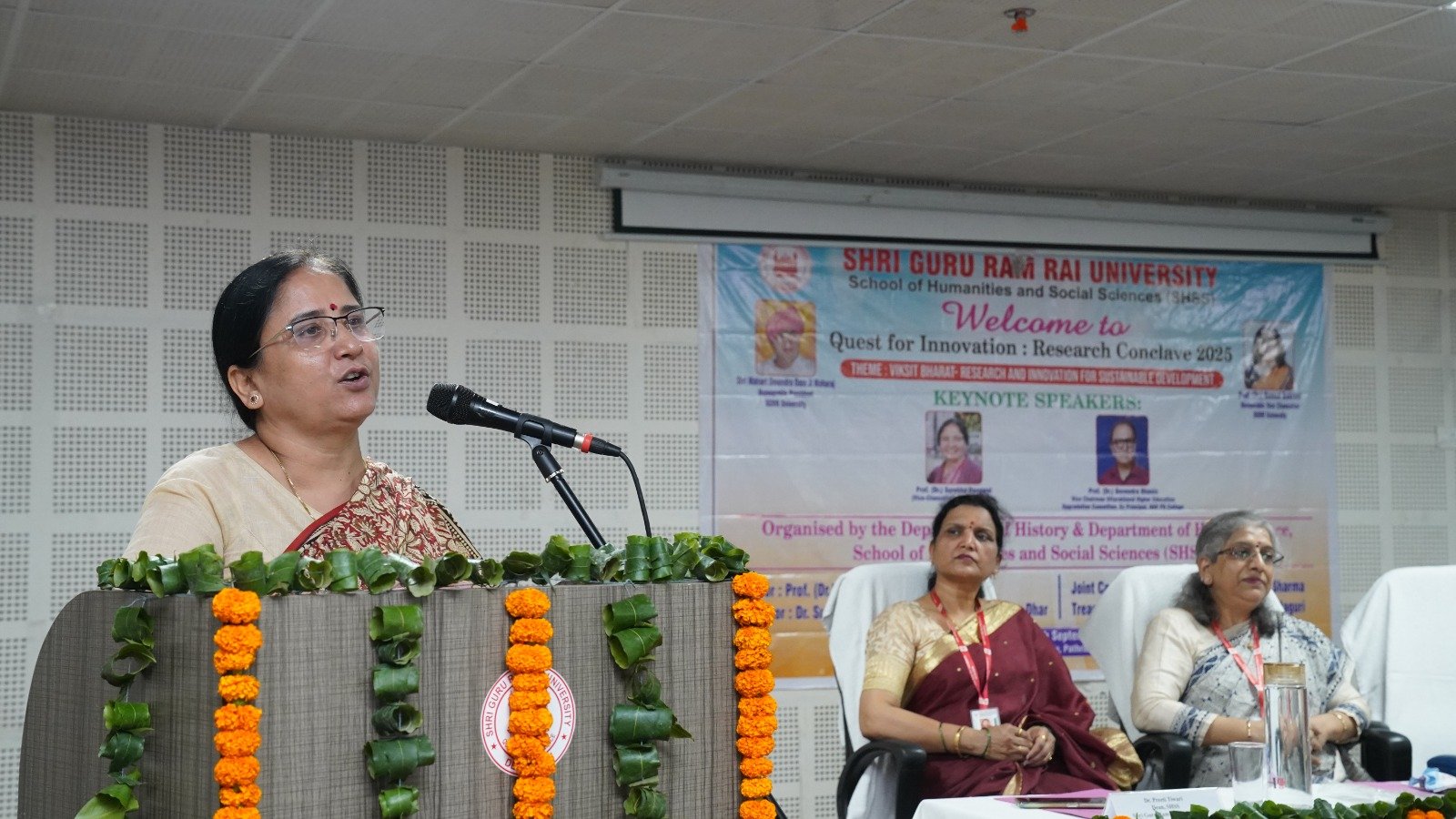 देहरादून। श्री गुरु राम राय विश्वविद्यालय के स्कूल ऑफ ह्यूमैनिटीज़ एंड सोशल साइंसेज़ में ” रिसर्च कॉन्क्लेव 2025″ का सफल आयोजन किया गया। इस कार्यक्रम की थीम “विकसित भारत – सतत विकास हेतु अनुसंधान और नवाचार” रही। 19 से 20 सितंबर तक चलने वाले इस दो दिवसीय सम्मेलन का आयोजन इतिहास और गृह विज्ञान विभाग के संयुक्त तत्वावधान में किया गया। सम्मेलन का आयोजन विश्वविद्यालय के पथरी बाग स्थित सभागार में हुआ, जिसमें विश्वविद्यालय के विभिन्न स्कूलों के शोधार्थियों, शिक्षकों और प्रतिभागियों ने नवाचार एवं सतत विकास पर अपने विचार और शोध प्रस्तुत किए।