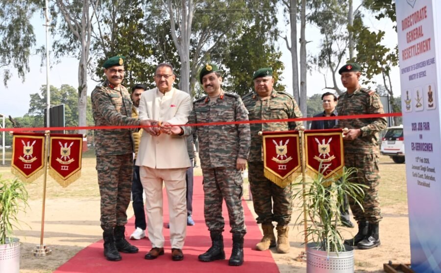 देहरादून : सैनिक कल्याण मंत्री गणेश जोशी ने आज देहरादून के गढ़ी कैंट स्थित जसवंत ग्राउंड में रक्षा मंत्रालय द्वारा आयोजित पूर्व सैनिक (ईएसएम) रोजगार मेले का रिबन काटकर विधिवत शुभारंभ किया। इस अवसर पर उन्होंने मेले में लगाए गए विभिन्न स्टालों का अवलोकन भी किया। रोजगार मेले में 40 से अधिक निजी कंपनियों ने भाग लेकर पूर्व सैनिकों के लिए रोजगार के विविध अवसर उपलब्ध कराए।