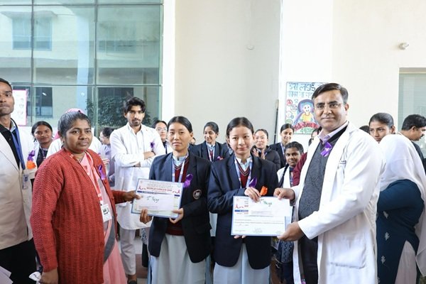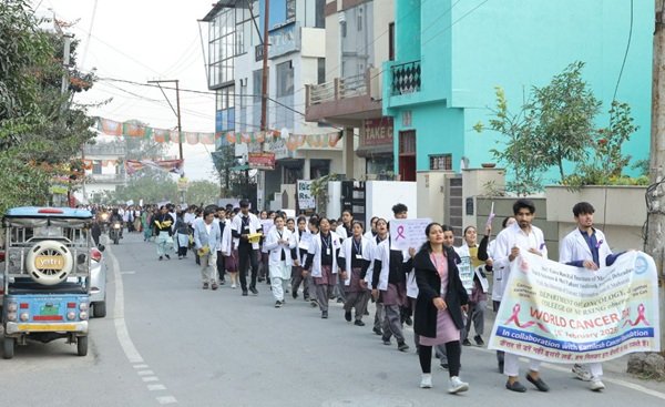 देहरादून : विश्व कैंसर दिवस के अवसर पर, श्री महंत इंदिरेश अस्पताल के ऑन्कोलॉजी विभाग ने, श्री गुरु राम राय विश्वविद्यालय के नर्सिंग कॉलेज और कमलेश कैंसर फाउंडेशन के सहयोग से कैंसर की रोकथाम और प्रारंभिक पहचान के बारे में जागरूकता फैलाने के लिए कई प्रभावशाली गतिविधियाँ आयोजित की। दिन की शुरुआत एक उत्साही रैली से हुई, जिसमें श्री गुरु राम राय विश्वविद्यालय के नर्सिंग कॉलेज के 300 नर्सिंग छात्र छात्राओं ने कॉलेज कैम्पस से कारगी चौक तक मार्च किया, और कैंसर के प्रति जागरूकता और रोकथाम के महत्व के संदेशों से सजे हुए बैनर और पोस्टर प्रदर्शित किए। यह रैली स्थानीय समुदाय में महत्वपूर्ण स्वास्थ्य संदेश फैलाने के लिए छात्रों की एकता का प्रतीक बनी।