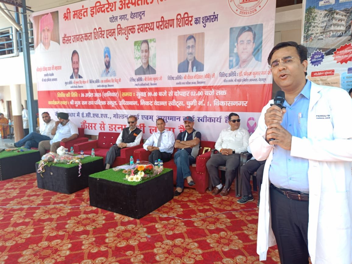 •  श्री महंत इन्दिरेश अस्पताल के वरिष्ठ कैंसर सर्जन डाॅ पंकज कुमार गर्ग ने कैंसर जागरूकता पर दिया व्याख्यान