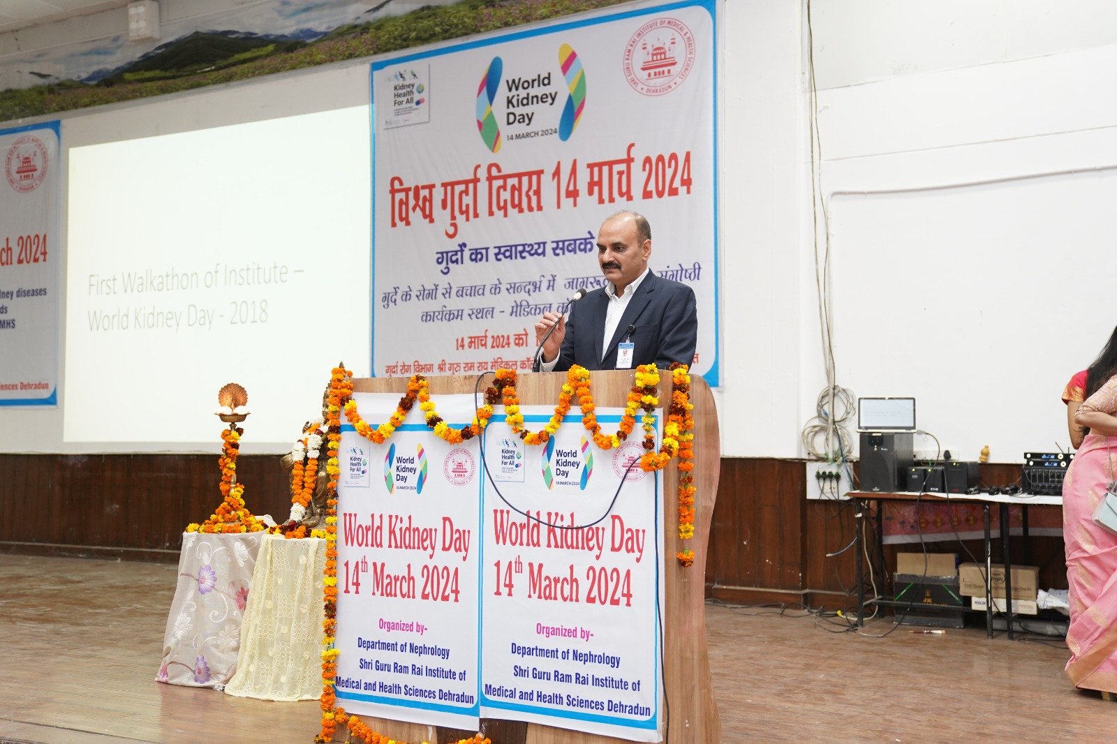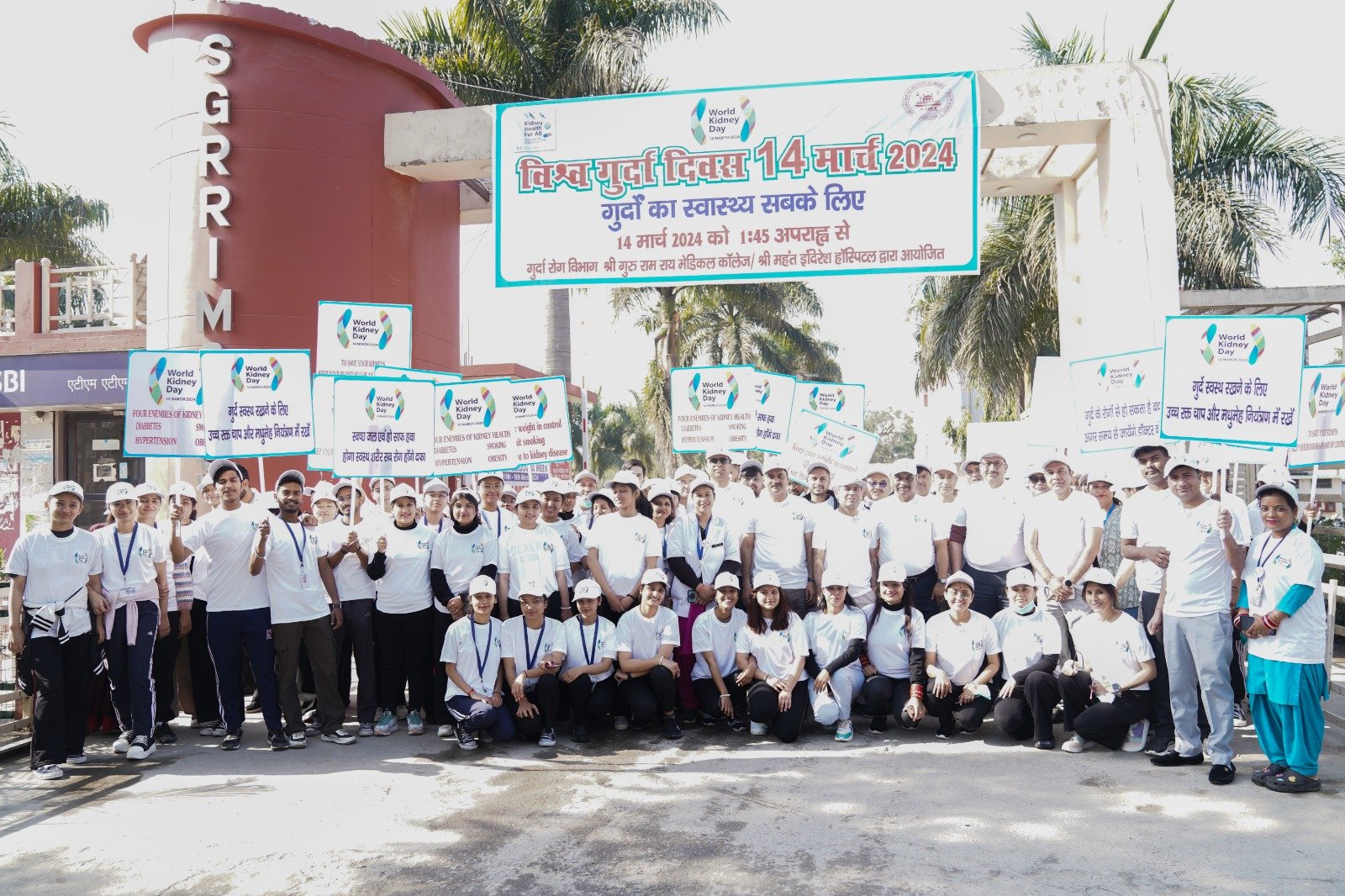 इससे पूर्व गुरुवार सुबह श्री गुरु राम राय इंस्टीट्यूट ऑफ मेडिकल एण्ड हैल्थ साइंसेज परिसर से जनजागरूकता रैली निकाली गई। गुर्दा रोग विभागाध्यक्ष, श्री महंत इन्दिरेश अस्पताल डॉ. आलोक कुमार ने हरी झण्डी दिखाकर रैली को रवाना किया। रैली में 200 से अधिक डॉ.क्टरों, मेडिकल छात्र-छात्राओं व स्टाफ ने प्रतिभाग किया। गुर्दा स्वस्थ रखने हेतु संतुलित आहार, उच्च रक्तचाप व मधुमेह को नियंत्रित रखें, स्वस्थ्य जल व हो साफ हवा तो होगा स्वस्थ शरीर, सब रोग होंगे दफा, गुर्दों के रोगों से हो सकता है बचाव अगर समय से जाएं डॉक्टर के पास लिखे संदेश लेकर मेडिकल छात्र-छात्राओं ने गुर्दा स्वास्थ्य सबके लिए विषय पर एक कार्यक्रम आयोजित किया गया।