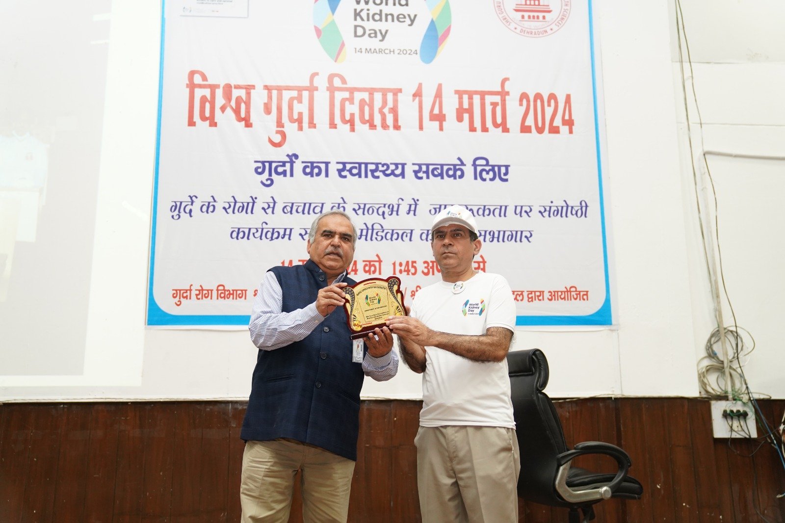 कार्यक्रम में विशेषज्ञों ने गुर्दा रोगियों की बढ़ती संख्या पर चिंता जाहिर व गुर्दा रोगों से बचाव के महत्वपूर्णं टिप्स सांझा किये। अस्पताल की ओर से किडनी दानदाताओं को सम्मानित किया गया। इस अवसर पर डॉ. पुनीत कुमार ओहरी, डॉ. प्रेरक मित्तल, मुख्य चिकित्सा अधीक्षक, श्री महंत इन्दिरेश अस्पताल, डॉ. अजय पंडित, चिकित्सा अधीक्षक, डॉ. गौरव रतूड़ी, डॉ. ललित कुमार वार्ष्णेय, डॉ. पंकज मिश्रा, डॉ. नरदीप नैथानी, डॉ. नारायण जीत, डॉ. किन्नरी ए व्यास रावत, डॉ. एम.ए.बेग, डॉ. सीमा आचार्य, डॉ. सुलेखा नौटियाल, डॉ. निधि जैन, डॉ. शशि मुंजाल, सुषमा कोठियाल सहित मेडिकल छात्र-छात्राएं एवं स्टाफ उपस्थित रहे।