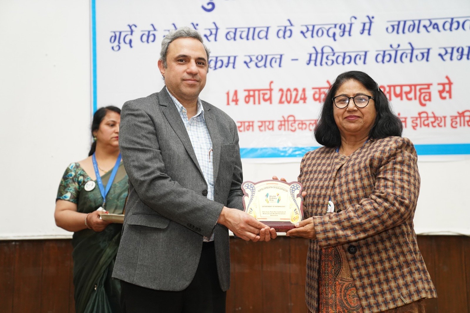 - अस्पताल की ओर से किडनी दानदाताओं को किया गया सम्मानित