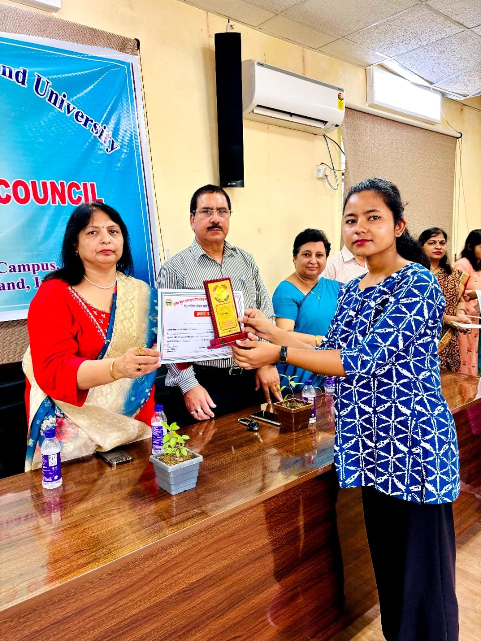 भाषण एवं  प्रस्तुतीकरण प्रतियोगिता में एम एस सी द्वितीय सेमेस्टर की लकी शर्मा, शोध छात्रा मोनिका एवं शोध छात्र नितिन को प्रथम तथा एम एस सी द्वितीय सेमेस्टर की हर्षिता अग्रवाल, शोध छात्रा शिवानी एवं सजल पाल को द्वित्तीय एवं शोध छात्र कौशल कुमार, मनीष, एम एस सी द्वितीय सेमेस्टर की साक्षी को तृतीय पुरस्कार प्रदान किया गया।