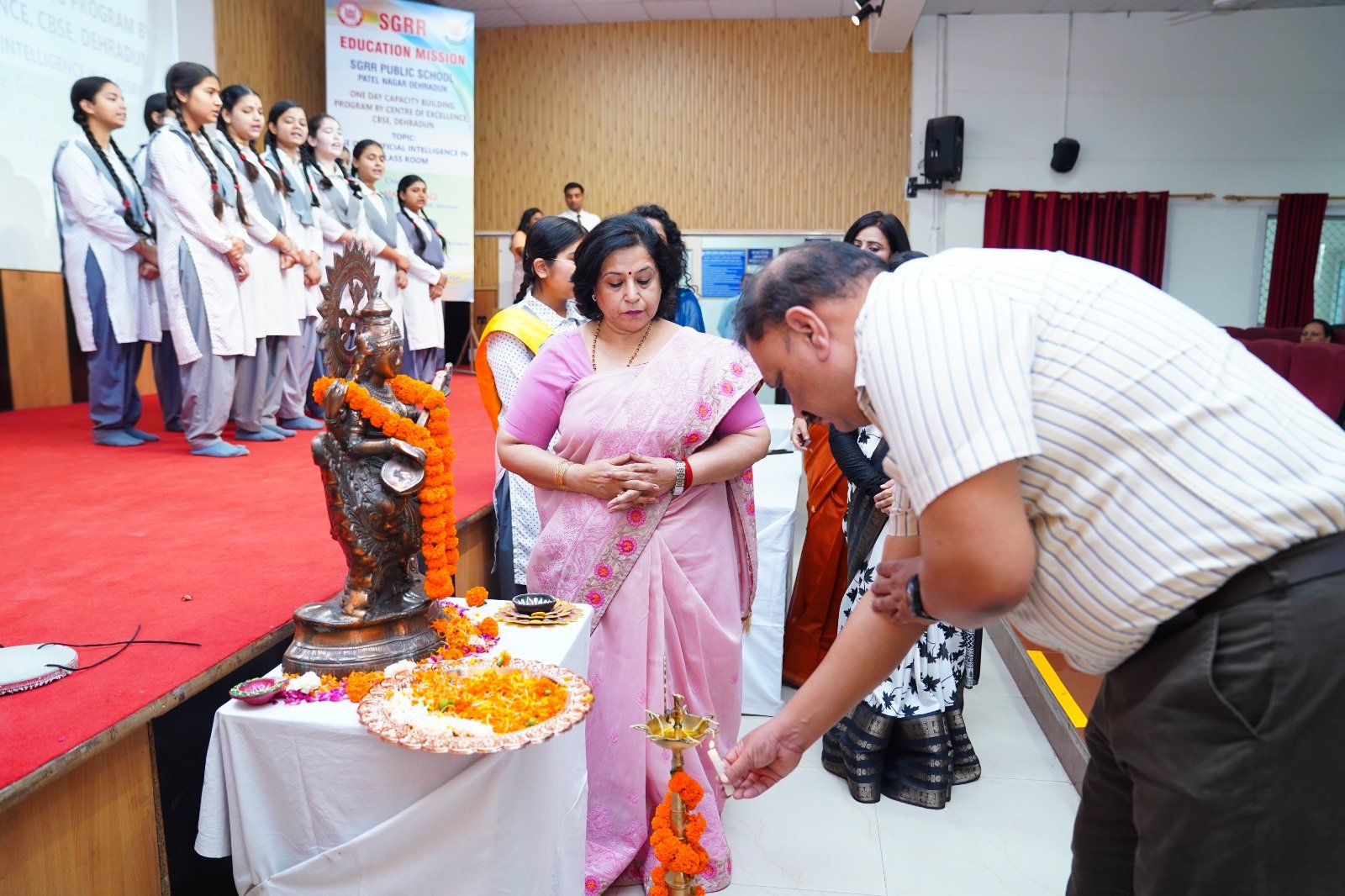 कार्यशाला का उद्घाटन सत्र मुख्य अतिथि, रिसोर्स पर्सन, प्रबंध समिति के सदस्य वीएम थपलियाल, ई.ओ. तथा विजय नौटियाल, अधिकृत हस्ताक्षरी, श्री गुरू राम राय एजुकेशन मिशन और स्कूल की प्रधानाचार्य द्वारा दीप प्रज्ज्वलन के साथ शुरू हुआ, जिसके बाद सरस्वती वन्दना की गई। विभिन्न स्कूलों से 60 प्रतिभागियों ने बहुत ही संवादात्मक तरीके से अपनी क्षमता को बढ़ाया। रिसोर्स पर्सन ने एआई के विभिन्न व्यावहारिक अनुप्रयोगों का प्रदर्शन किया। मुख्य अतिथि मनीष त्यागी ने प्रतिभागियों को अपने ज्ञान को बढ़ाने और अद्यतन करने के लिए अधिक से अधिक प्रशिक्षण कार्यक्रम में भाग लेने के लिए प्रेरित किया।