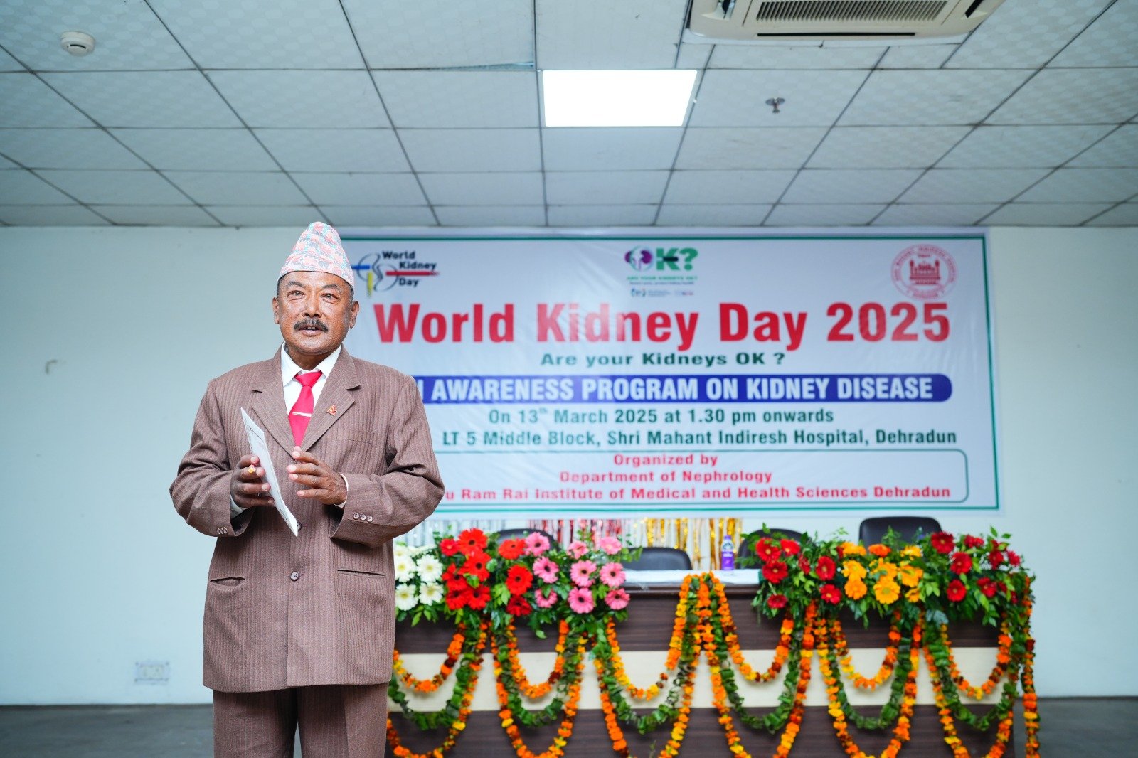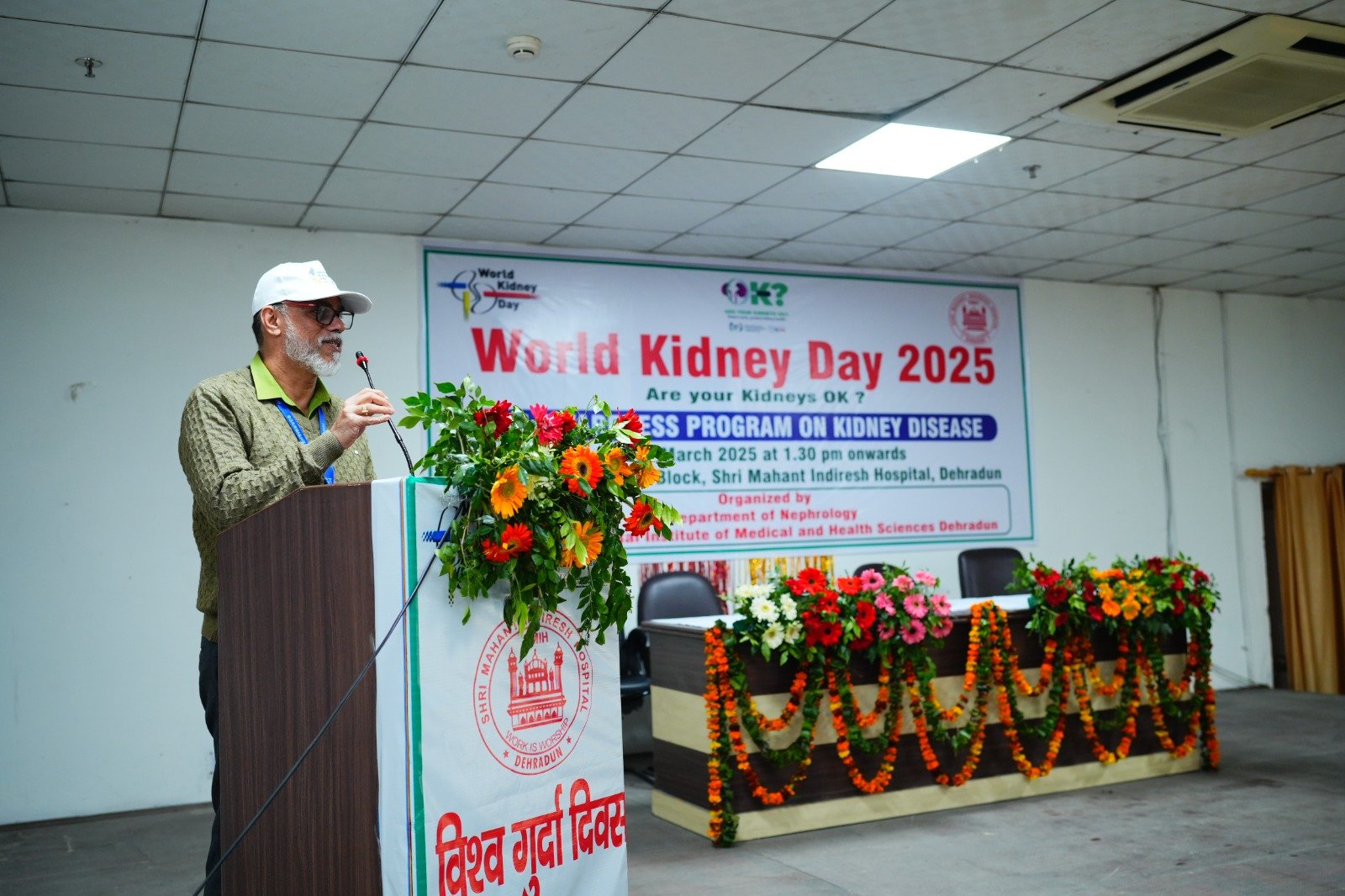 कार्यक्रम में डाॅ अशोक नायक, डाॅ उत्कर्ष शर्मा, मुख्य चिकित्सा अधीक्षक श्री महंत इन्दिरेश अस्पताल, डाॅ अजय पंडिता, चिकित्सा अधीक्षक, डाॅ गौरव रतूड़ी, चिकित्सा अधीक्षक, डाॅ पुनीत ओहरी, उप प्राचार्य ने भी महत्वपूर्ण जानकारियां सांझा की। डाॅ विवेक विज्जन, डाॅ विमल कुमार दीक्षित ने पैनल परिचर्चा में लोगों की जिज्ञासाओं को शांत किया। मंच संचालन सिमरन अग्रवाल व दीप्ति चंद ने किया। डाॅ गौरव शेखर शर्मा ने धन्यवाद प्रस्ताव ज्ञापित किया। कार्यक्रम में किडनी रोगियों एवं उनके परिजनों ने प्रतिभाग कर किडनी बीमारयों से बचाव के बारे में महत्वपूर्णं जानकारियां अर्जित कीं। इस अवसर पर श्री महंत इन्दिरेश अस्पताल के विभिन्न विभागों के डाॅक्टर, नसिंग स्टाफ व गुर्दा रोग विभाग की पूरी टीम उपस्थित रही।