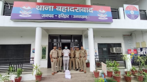 बहादराबाद : एसएसपी प्रमेन्द्र सिंह डोबाल के प्रखर नेतृत्व में नशा तस्करों के विरुद्ध कड़ी कार्रवाई के क्रम में थाना बहादराबाद पुलिस को बड़ी कामयाबी हाथ लगी। कांवड़ की तैयारियों के बीच एसएसपी हरिद्वार के चलाए जा रहे सघन चेकिंग अभियान के दौरान बहादराबाद हरिद्वार पुलिस द्वारा दिनांक 05 जुलाई 2025 को दौराने चेकिंग नहर पटरी पथरी पॉवर हाऊस के पास से अभियुक्त मोहम्मद मुर्सलीन को 01 किलो 42 ग्राम स्मैक लाल रंग, 457 ग्राम मिलावट स्मैक, डिजिटल तराजू, एक पैकेट लाल रंग पाउडर व बाइक के साथ दबोचा गया। आरोपी के विरुद्ध थाना बहादराबाद पर मुकदमा अपराध संख्या 274/25 धारा 8/21/60 NDPS के तहत दर्ज किया गया।