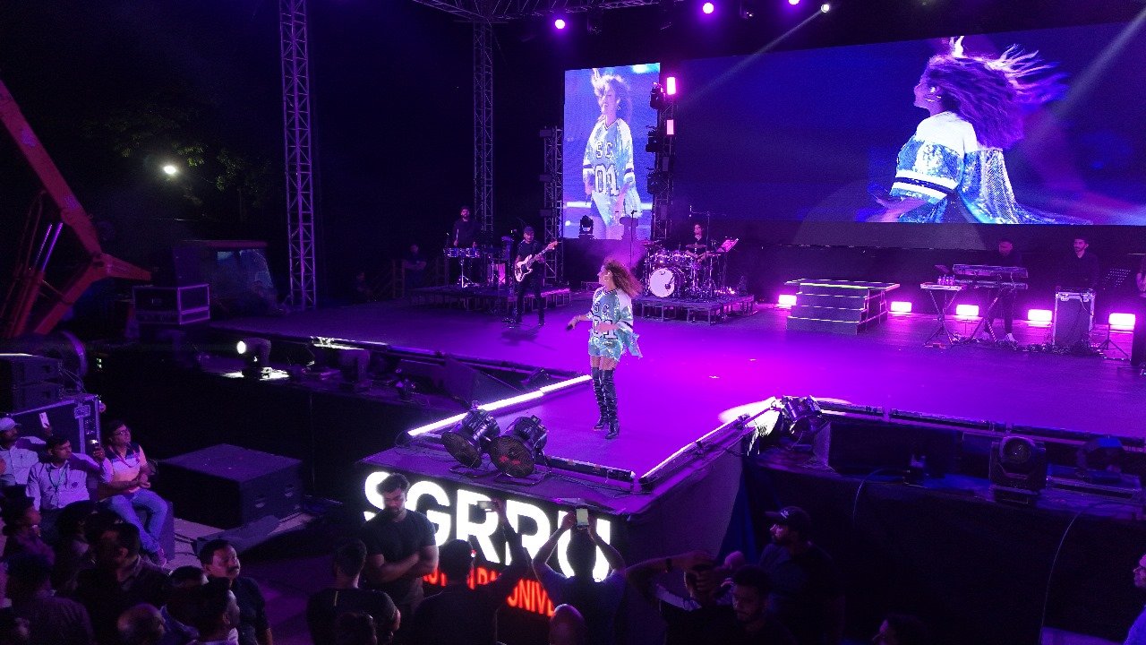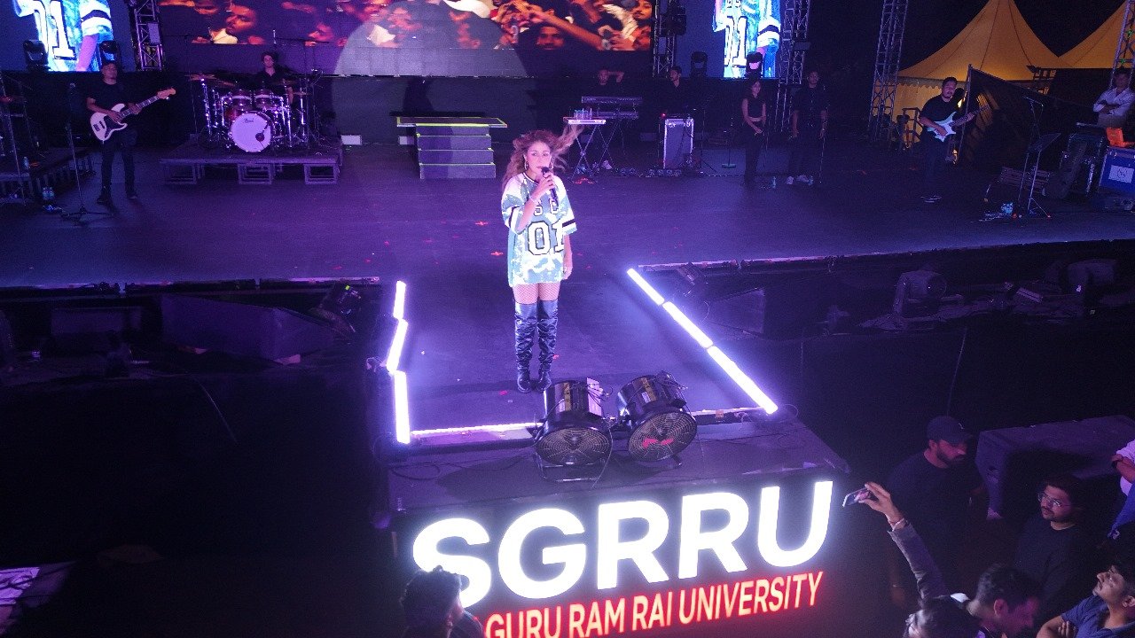 गुरुवार को एसजीआरआरयू विश्वविद्यालय की शाम सुनिधि चौहान की प्रस्तुतियों के नाम रही। श्री गुरु राम राय विश्वविद्यालय के प्रांगण में 3 घण्टे तक सुनिधि के गीतों का जादू छाया रहा। सुनिधि चौहान ने अपनी मधुर आवाज एवं परफॉर्मेंस से दर्शकों को मंत्रमुग्ध कर दिया। फैस्ट में मौजूद सभी छात्र-छात्राएं काफी उत्साहित नजर आए। सभी ने सुनिधि चौहान के गीतों पर जमकर डांस किया और उनके गीतों पर झूमते रहे।