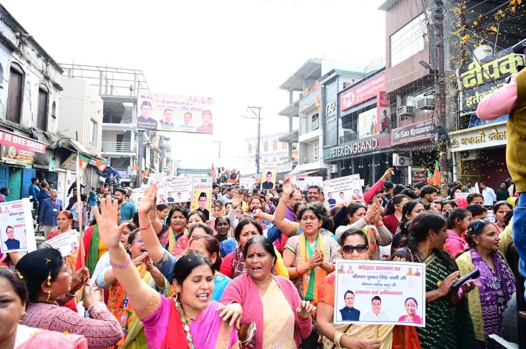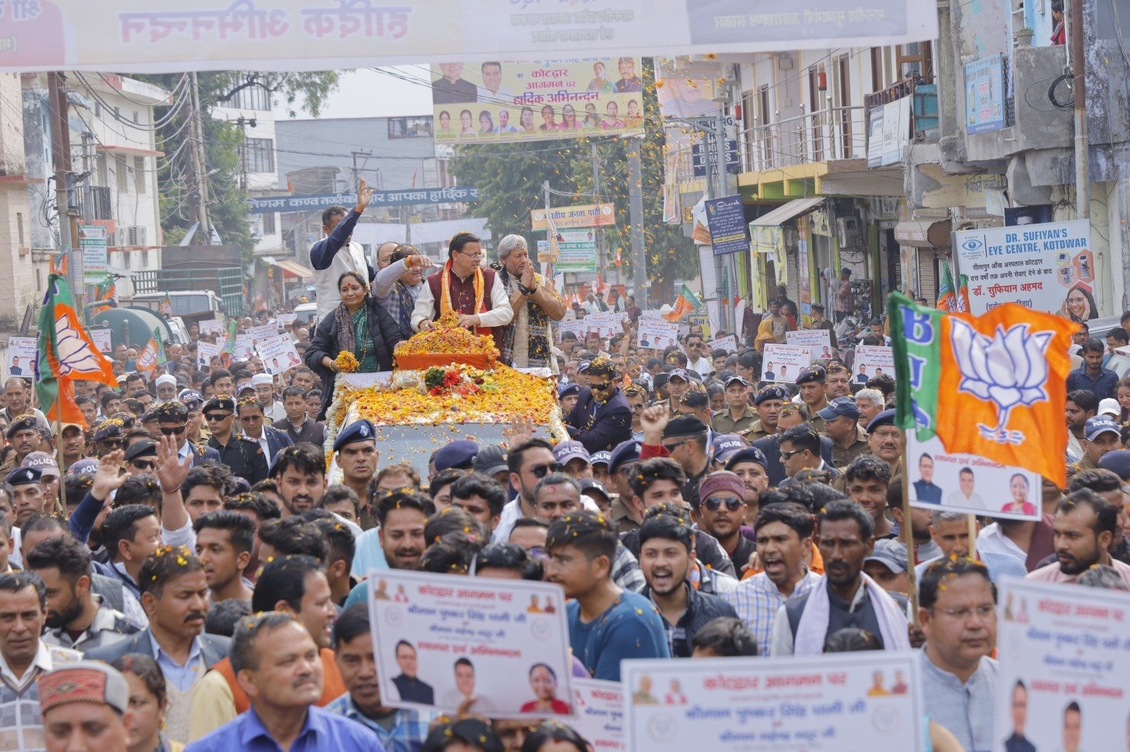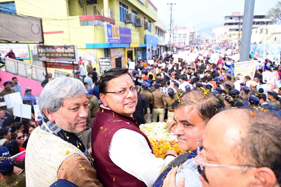 इस दौरान पूर्व मुख्यमंत्री और वर्तमान सांसद तीरथ सिंह रावत ने कहा कि माननीय प्रधानमंत्री के नेतृत्व में भारत का स्वाभिमान लौट आया है। उन्होंने सबको साथ लेते हुए देश के लिए जो काम किया है उसे हमारा देश चहुंमुखी विकासपथ पर अग्रसर हो रहा है। इस दौरान विधानसभा अध्यक्ष विधायक कोटद्वार रितु खंडूरी ने कहा कि मुख्यमंत्री ने कोटद्वार में आई आपदा के दौरान त्वरित गति से बाढ़ सुरक्षात्मक कार्य संपन्न करवाए। प्रदेश की वर्तमान सरकार महिला और बच्चों के स्वास्थ्य, सुरक्षा, स्वतंत्रता के लिए अनेक योजनाएं संचालित कर रही हैं।कार्यक्रम के मुख्य स्थल पर पहुंचने से पहले मुख्यमंत्री ने महाराज वेडिंग प्वाइंट से बद्रीनाथ मार्ग झंडाचौक होते हुए नगर निगम के समीप मोंटसरी स्कूल तक रोड-शो किया । इस अवसर पर विधायक लैंसडाउन दिलीप सिंह रावत व विधायक यमकेश्वर रेनू बिष्ट, गौ सेवा आयोग के अध्यक्ष राजेंद्र अन्थवाल, पूर्व विधायक शैलेंद्र रावत,  जिलाधिकारी गढ़वाल डॉ आशीष चौहान, वरिष्ठ पुलिस अधीक्षक श्वेता चौबे, मुख्य विकास अधिकारी अपूर्वा पाण्डेय सहित बड़ी संख्या में जनमानस उपस्थित था।
