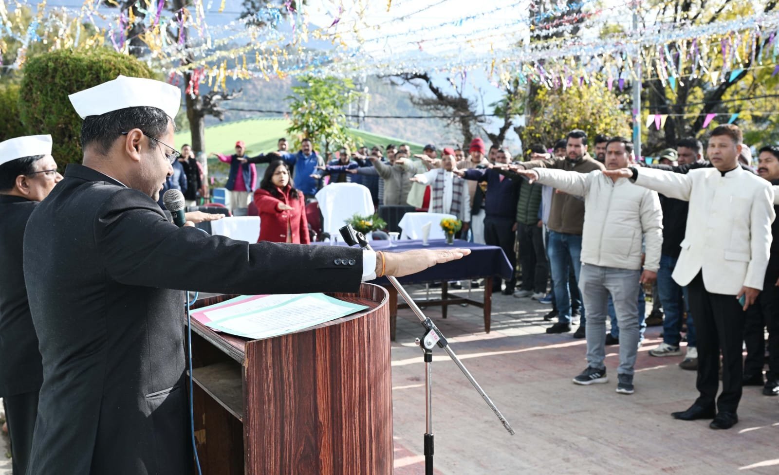 चमोली : 77वें गणतंत्र दिवस के पावन अवसर पर जिलाधिकारी गौरव कुमार द्वारा कलेक्ट्रेट परिसर में ध्वजारोहण किया गया। इस अवसर पर समस्त जिला स्तरीय अधिकारीगण एवं कलेक्ट्रेट परिसर में उपस्थित कर्मचारियों द्वारा राष्ट्रगान का सामूहिक गायन किया गया। ध्वजारोहण के उपरांत जिलाधिकारी ने उपस्थित सभी अधिकारियों एवं कर्मचारियों को भारतीय संविधान की प्रस्तावना की शपथ दिलाई तथा गणतंत्र दिवस की शुभकामनाएं देते हुए सभी को संविधान के मूल्यों के अनुरूप कार्य करने का आह्वान किया।