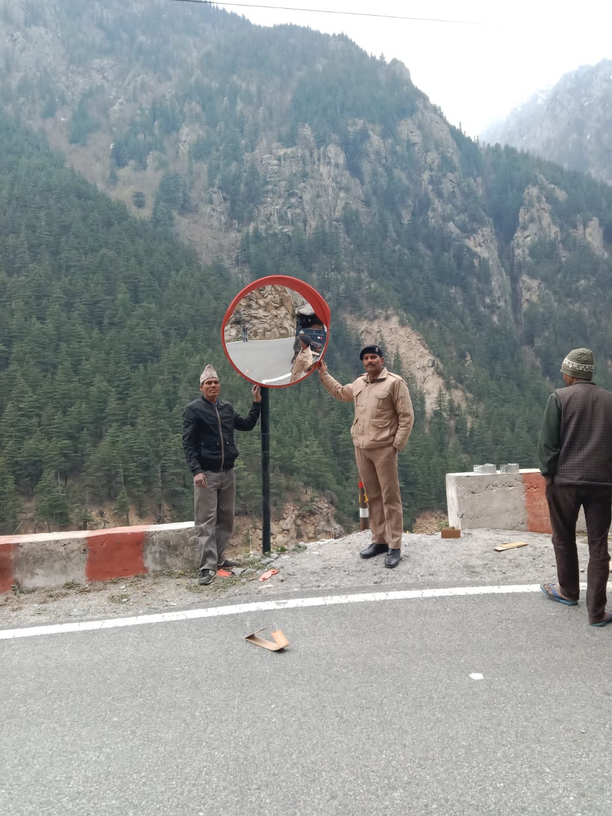 उत्तरकाशी (कीर्ति निधि सजवाण): चारधाम यात्रा 2024 शुरू होने में कुछ दिन शेष रह गये है। यात्रा के सरल, सुगम, सुरक्षित एवं सुचारू रूप से संचालन हेतु पुलिस अधीक्षक उत्तरकाशी के निर्देशन में उत्तरकाशी पुलिस सुरक्षित यात्रा की तैयारियों में लगी है। सुगम, सुरक्षित एवं सुचारू यातायात व्यवस्था हेतु आज यातायात पुलिस द्वारा निरीक्षक यातायात राजेन्द्र नाथ के नेतृत्व में गंगोत्री राष्ट्रीय राजमार्ग पर उत्तरकाशी जिला मुख्यालय से गंगोत्री तक दुर्घटना संभावित तीव्र मोड़ो पर कन्वेक्स मिरर लगाये गये। कन्वेक्स मिरर से वाहन चालक मोड़ो पर विपरीत ओर से आ रहे यातायात को बहुत दूर से आसनी से देखकर अपने वाहन को सावधानी से नियंत्रित कर सकते हैं। यह एक्सीडेंट को रोकने में बहुत मददगार होते है।