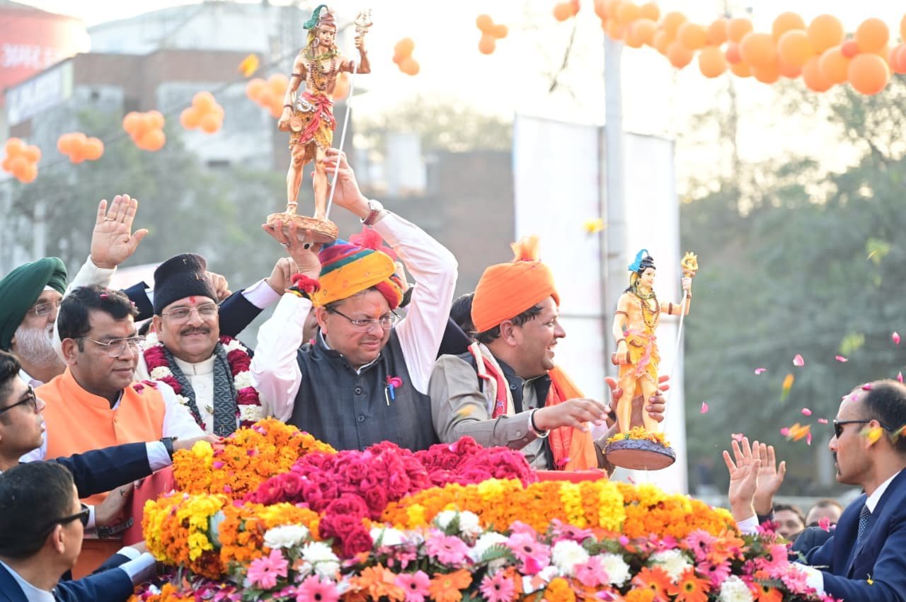मुख्यमंत्री धामी ने त्रिशूल चौक का लोकार्पण किया उससे पूर्व उन्होंने कांवरियों की पैर पखारे एवं उनको अंगवस्त्र व पुष्प माला भेंट कर उनका अभिवादन किया, इसके उपरांत त्रिशूल चौक से सरस मेला कार्यक्रम स्थल गांधी पार्क तक आयोजित शिव बारात में प्रतिभाग किया। शिव बारात में माननीय मुख्यमंत्री का विभिन्न संगठनों व जनता द्वारा फूलमाला, पुष्पवर्षा कर भव्य स्वागत किया।