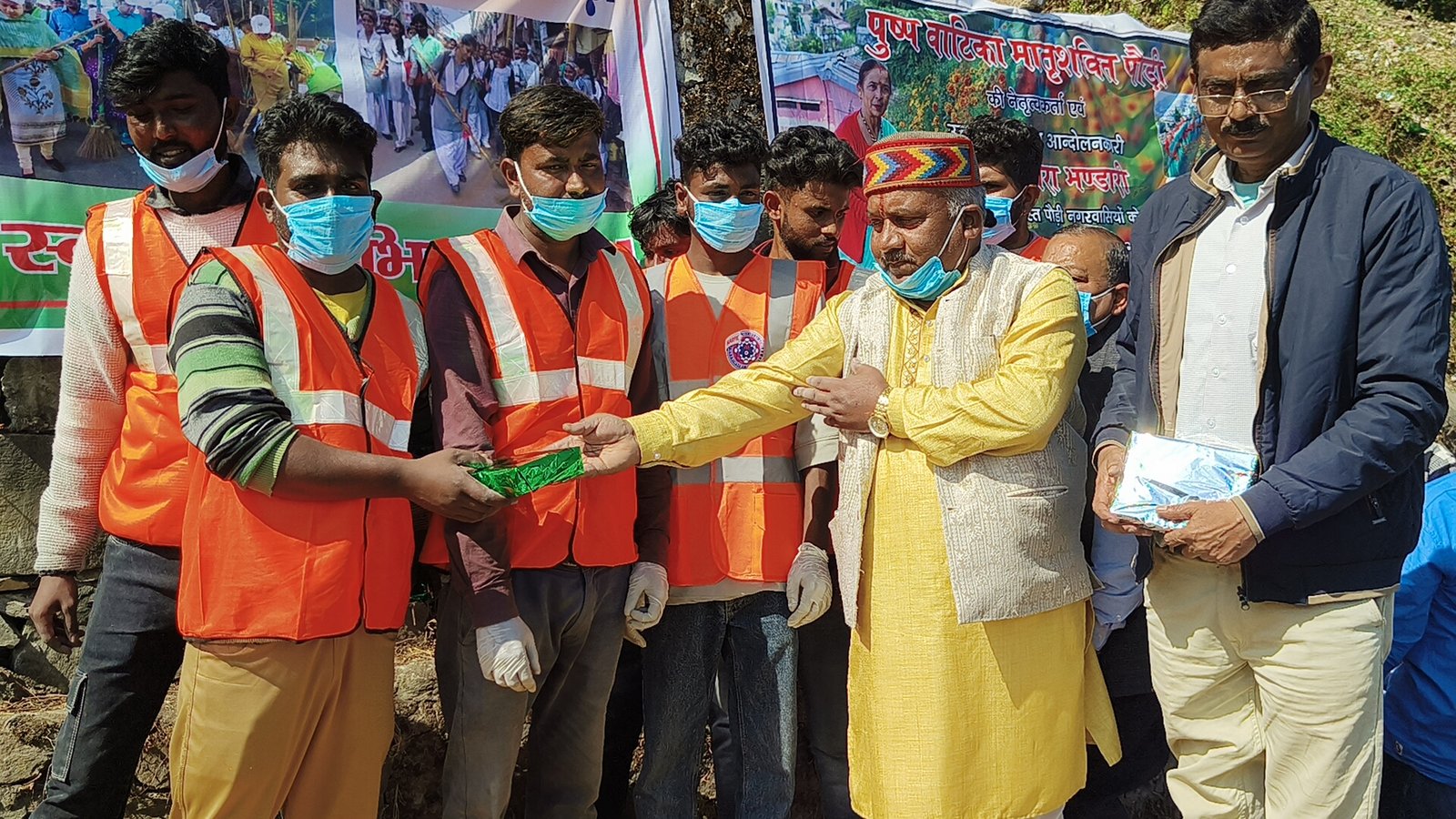 पौड़ी : जिला मुख्यालय/नगर पालिका परिषद पौड़ी के अन्तर्गत जिला चिकित्सालय के पास बनी पुष्प वाटिका के पास स्थानीय विधायक राजकुमार पोरी व जिलाधिकारी गढ़वाल डॉ आशीष चौहान के नेतृत्व में सफाई अभियान चलाया गया। सुरक्षा के साथ-साथ स्वच्छ दीपावली बनाये जाने को लेकर मुख्यमंत्री उत्तराखण्ड सरकार के दिशा-निर्देशों के क्रम में जनपद में सभी नगर निकायों के अन्तर्गत जनप्रतिनिधियों, अधिकारियों व कर्मचारियों द्वारा संयुक्त रुप से सफाई अभियान चलाया गया। सफाई अभियान के साथ मनाये जा रहे दीपावली के पर्व पर निकायों में सफाई कर्मियों के लिए स्वास्थ्य शिविरों का आयोजन किया गया, साथ ही उन्हे उपहार व मिष्ठान वितरित कर सम्मानित किया गया।