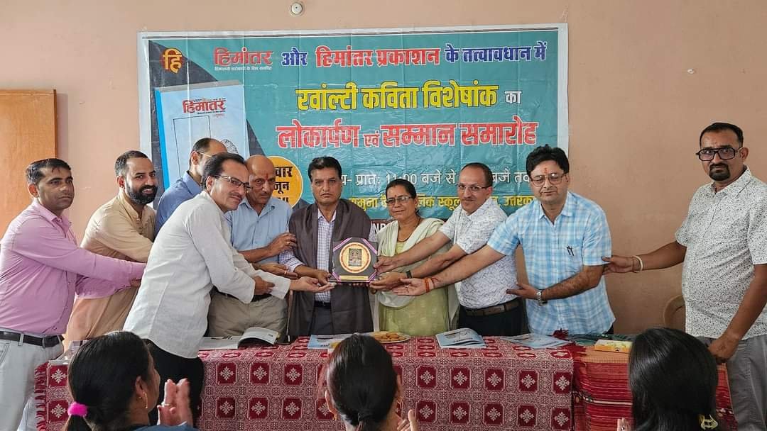 नौगांव/उत्तरकाशी : यमुना वैली पब्लिक स्कूल में हिमांतर प्रकाशन से प्रकाशित रवांल्टी कविता विशेषांक का विमोचन और सम्मान समारोह आयोजित किया गया। देश के ख्यातिलब्ध साहित्यकार महावीर रवांल्टा को वाल्मीकीय रामायण का रवांल्टी में संक्षिप्त अनुवाद करने के लिए सम्मानित किया गया। इस दौरान गोष्ठी का भी आयोजन किया गया। इस मौके पर महावीर रवांल्टा ने कहा कि अपनी भाषा को बचाने के लिए हमें और अधिक गंभीर और सामूहिक प्रयास करने होंगे। उन्होंने रवांल्टी में कविता लेखन करने वाले युवाओं को प्रेरित करने के साथ यह संदेश भी दिया कि वे गंभीरता से लेखन करें। साथ ही यह भी कहा कि लेखन तभी अच्छा होगा, जब अध्ययन गहन होगा। इस दौरान महावीर रवांल्टा ने अपने प्रेरक संस्मरण भी सुनाए।