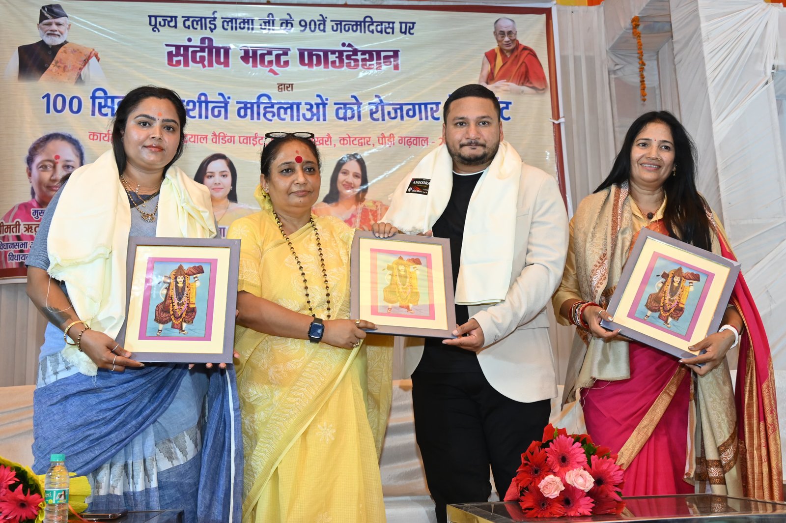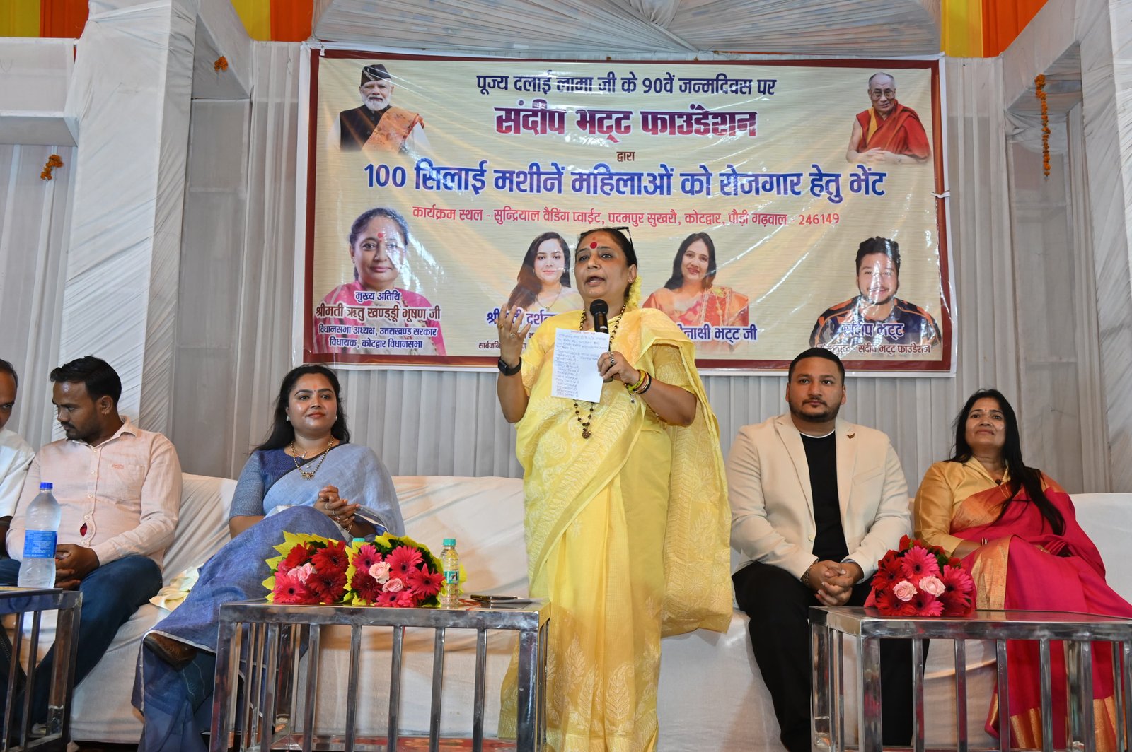 अपने संबोधन में ऋतु खण्डूडी ने कहा कि संदीप भट्ट फाउंडेशन विगत कई वर्षों से पूज्य दलाई लामा जी के जन्मदिवस को महिला सशक्तिकरण दिवस के रूप में मनाता आ रहा है। इस वर्ष संस्था ने कोटद्वार को कार्यक्रम स्थल के रूप में चयनित करते हुए, कोटद्वार की 100 महिलाओं को स्वरोजगार के लिए 100 सिलाई मशीनें भेंट करने का सराहनीय कार्य किया है।