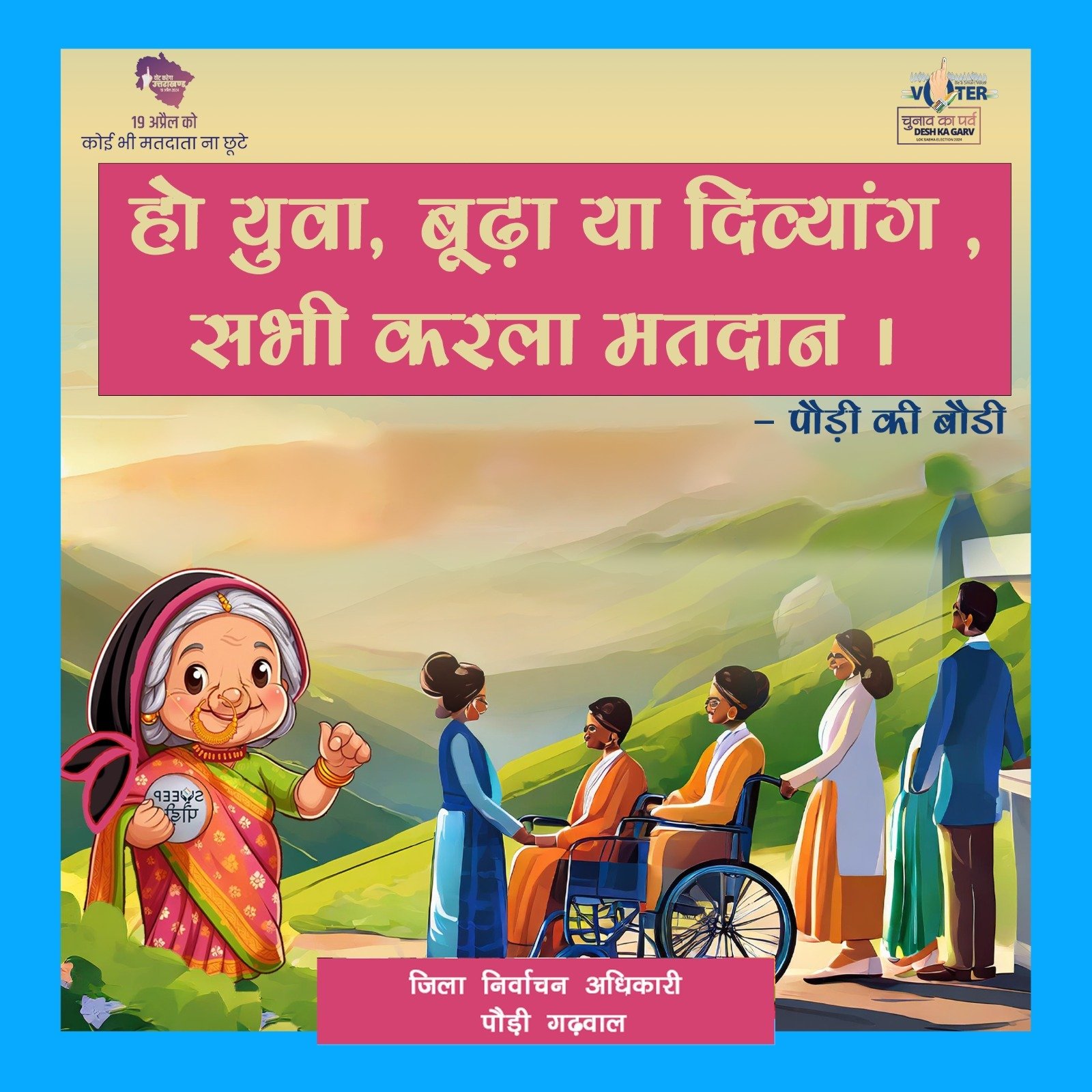 इलैक्शन मैस्कॉट “पौड़ी की बौडी” के माध्यम से किया जा रहा हैं मतदाताओं को जागरूक