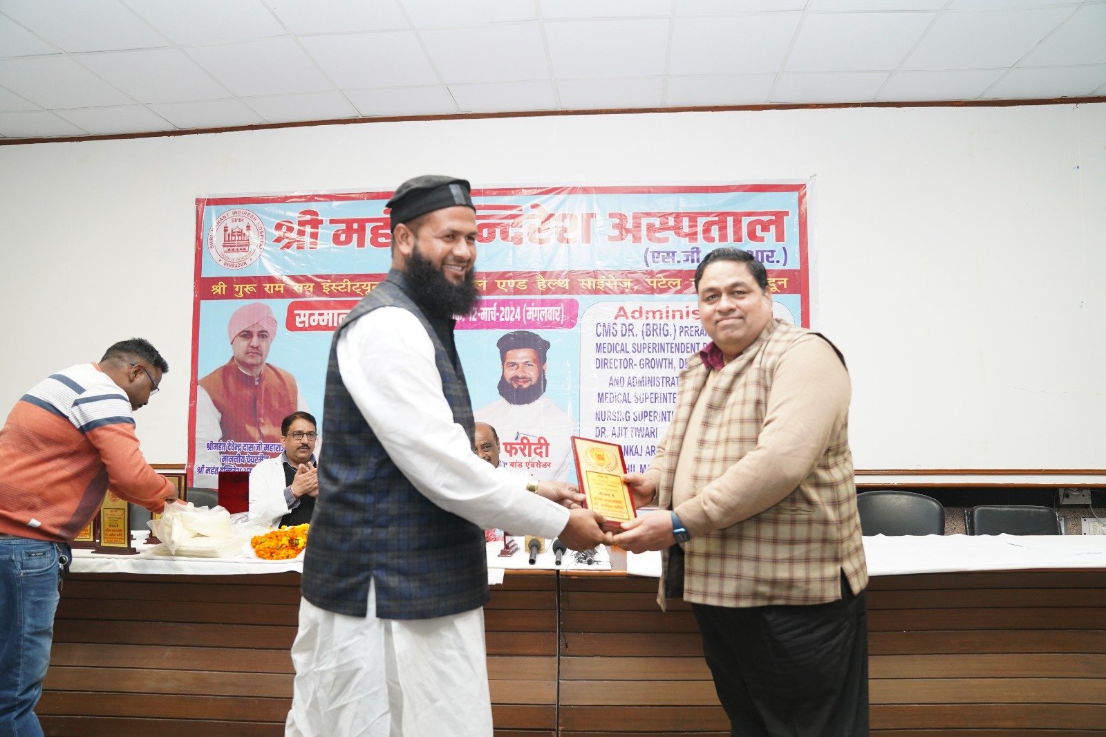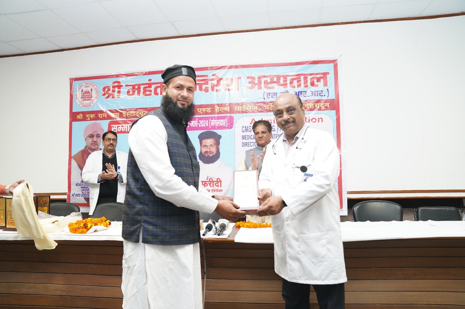 डब्ल्यू एमएफ मानवाधिकार महासंघ उत्तराखण्ड की ओर से आयोजित सम्मान समारोह में मुख्य अतिथि राजकुमार सिंधु ने कार्यक्रम का शुभारंभ किया। उन्होंने कहा कि रमजान ए पाक का महिना सेवा का संदेश भी देता है। मानव सेवा ही सच्ची सेवा है। उन्होंने कहा कि श्री महंत इन्दिरेश अस्पताल के द्वारा गरीब एवं जरूरतमंद मरीजों को हरसम्भव उपचार सेवाएं उपलब्ध करवाई जा रही हैं। पश्चिम उत्तर प्रदेश से भी भारी संख्या में मरीज़ उपचार के लिए श्री महंत इन्दिरेश अस्पताल में पहुंचते हैं। जब ये मरीज़ और पूर्ण स्वास्थ्य लाभ लेकर वापिस क्षेत्रों में अस्पताल की सेवाओं की सराहना करते हैं तो इससे क्षेत्र में अस्पताल की ख्याति और बढ़ जाती है। उन्होंने अस्पताल की प्रबन्ध समिति, उच्चाधिकारियों सहित डॉक्टरों एवं स्टाफ के कार्यों एवं सहयोग की सराहना की। कार्यक्रम का संचालन सिमरन अग्रवाल ने किया। इस अवसर पर वर्मन चौधरी, मोहम्मद सलमान, प्रदेश अध्यक्ष भारतीय किसान मजदूर संयुक्त मोर्चा, दलचन्द्रा आदि उपस्थित रहे।